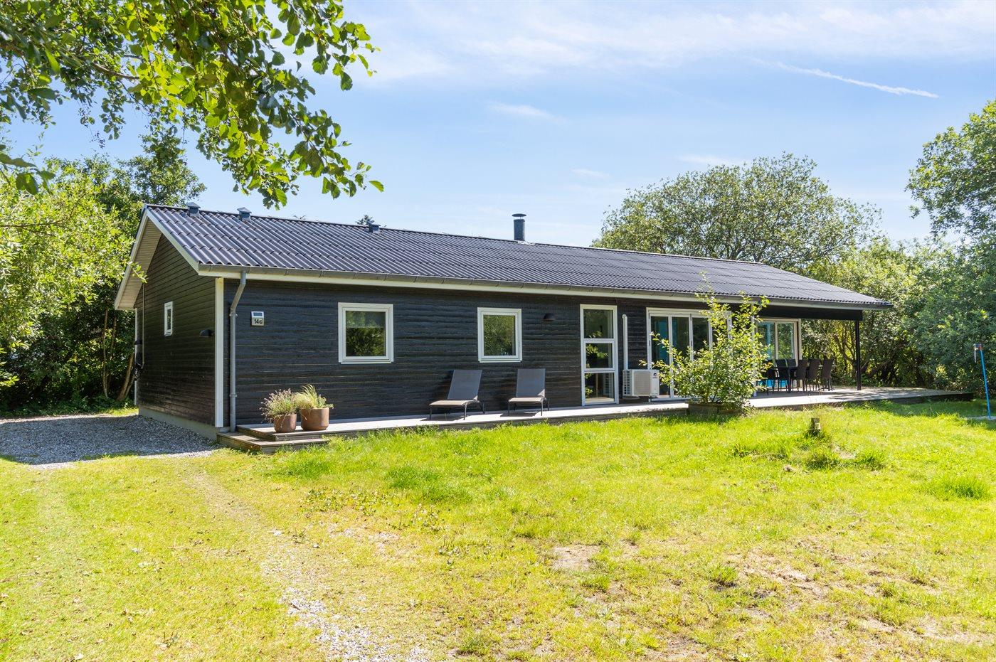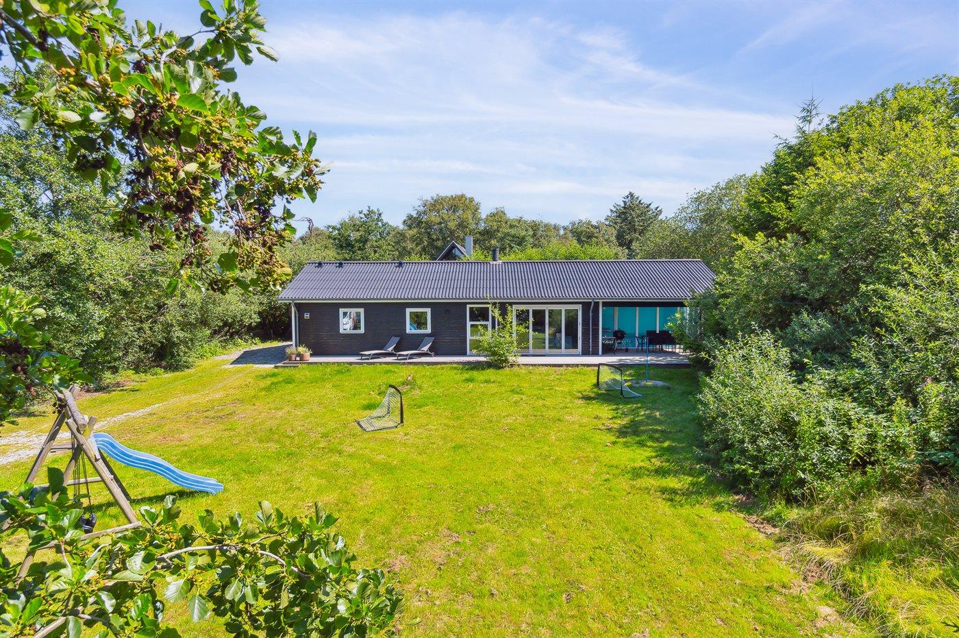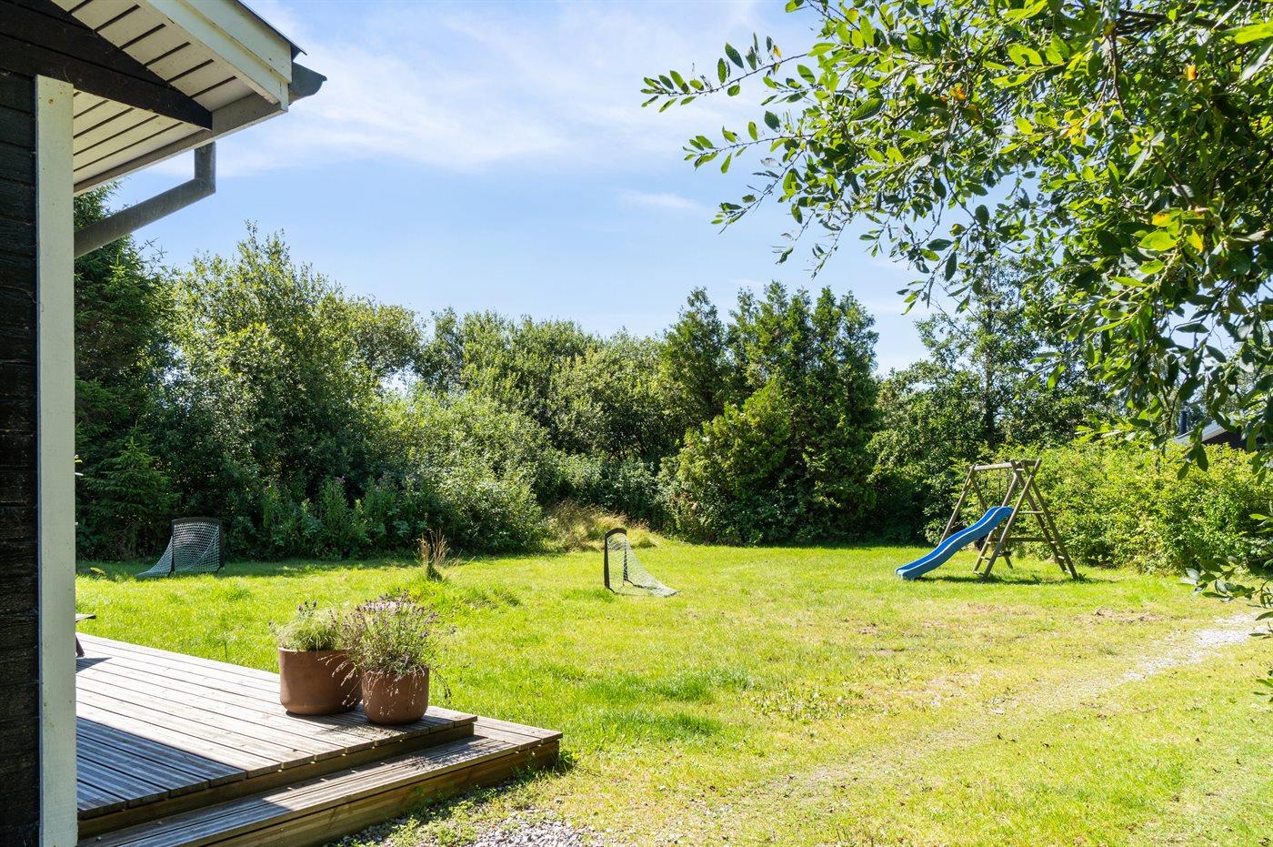 Ferieboligen er beliggende på en 1358 m² stor naturgrund. Der er 100 m til havet. Nærmeste forretning er beliggende i en afstand af 500 m. Til ferieboligen hører åbent terrasseareal. Desuden er der overdækket terrasse. Gynge. Sandkasse. Rutchebane. Grill til rådighed. Der er installeret stik til opladning af elbil. Type 2 stik. Med 11 kW ladeeffekt. Parkering ved ferieboligen.