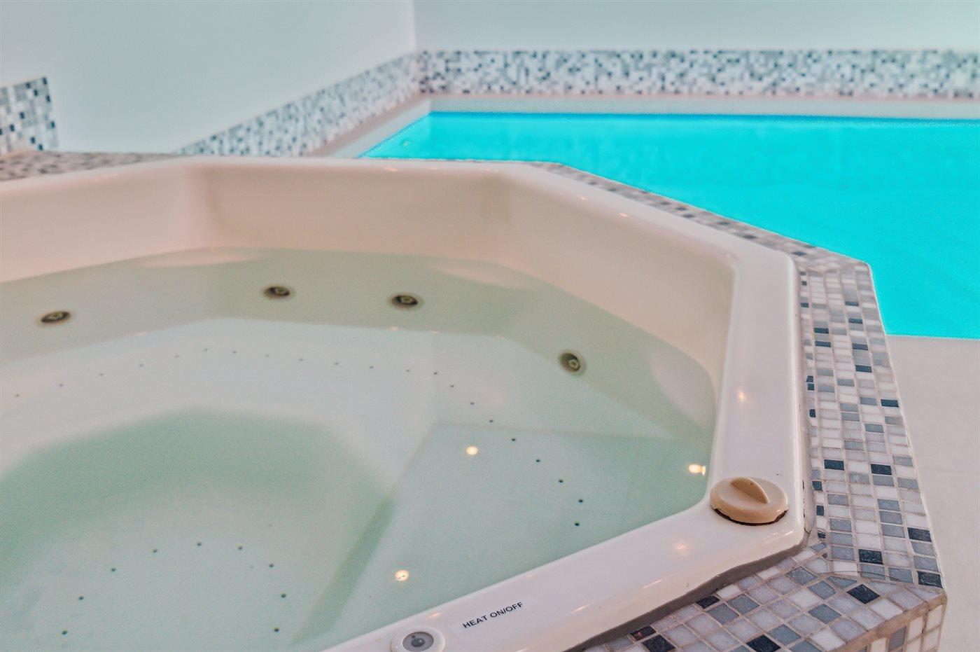 I den indendørs standvandsspa er der plads til 5 personer.