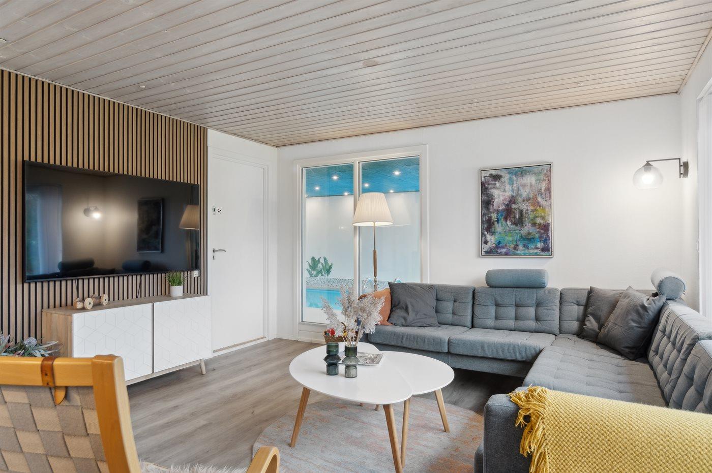Nu kan du leje dette skønne sommerhus med swimmingpool ved Øer Strand.
