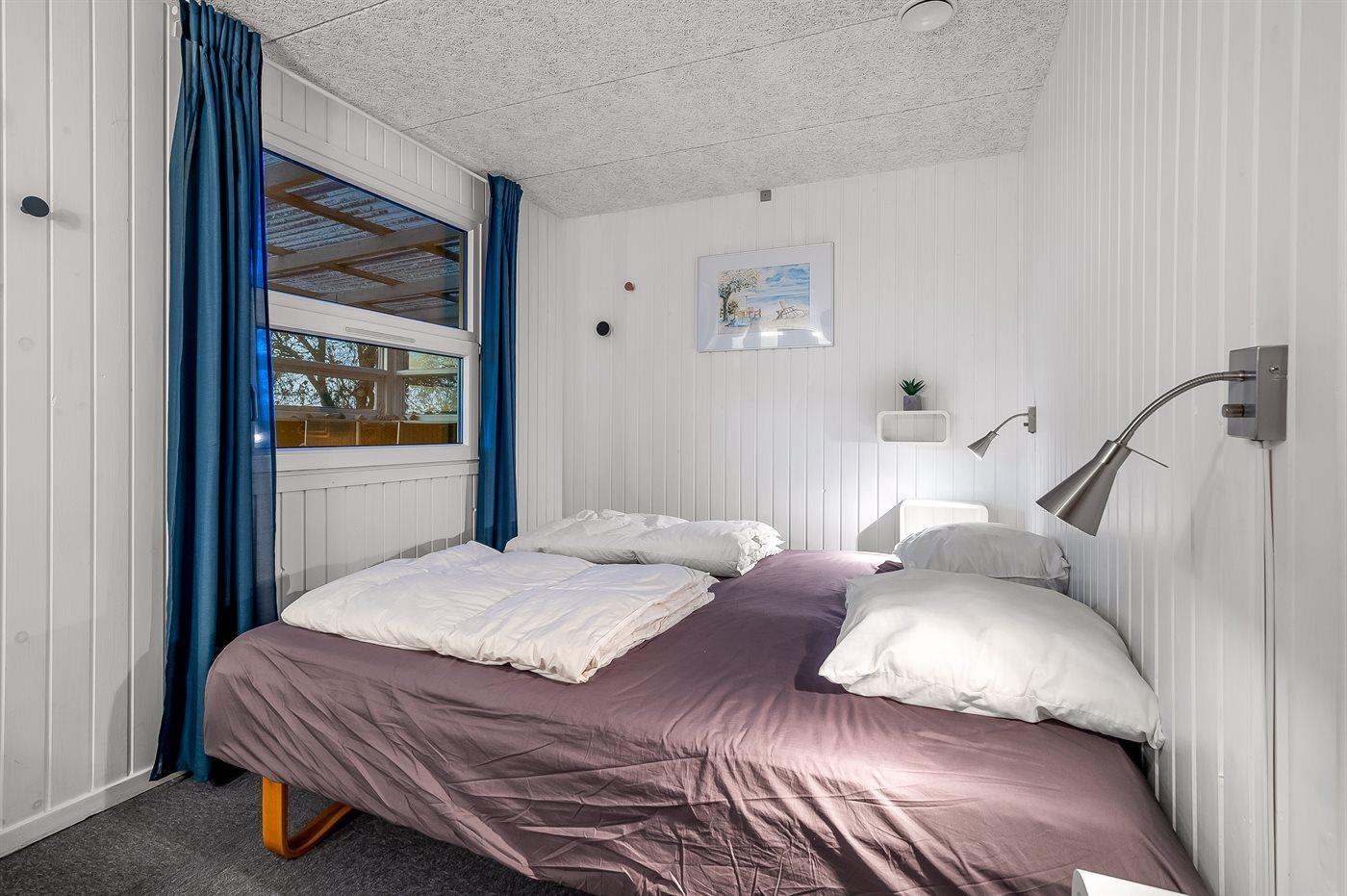 Der er i alt 2 soveværelser. Sovepladserne fordeler sig på: 2 sovepladser i dobbeltseng. 2 sovepladser i enkeltsenge. Derudover er der 1 stk. barneseng.