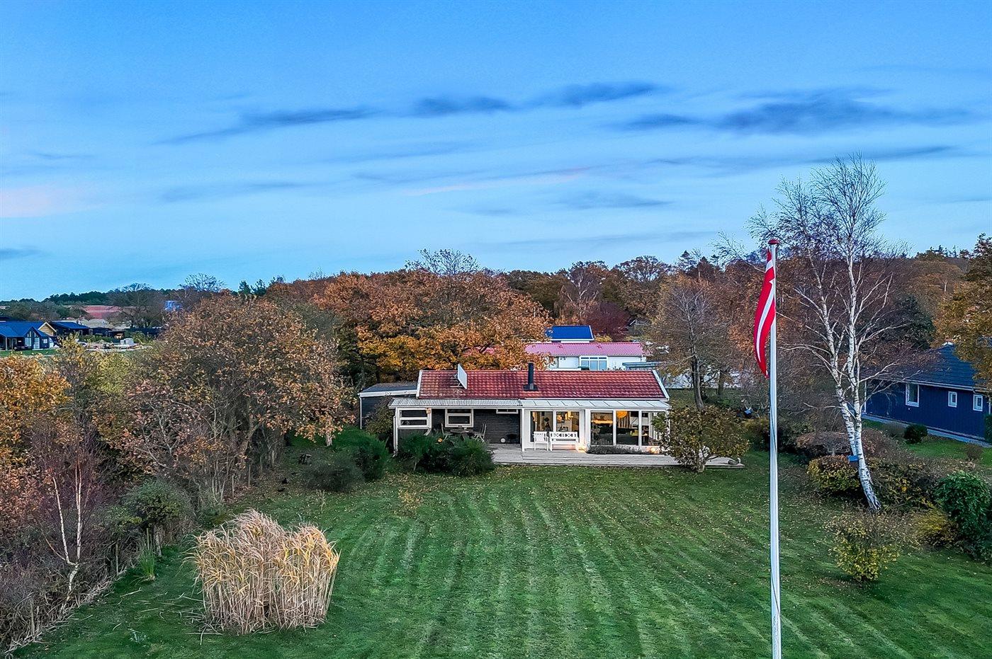 Ferieboligen er beliggende på en 1993 m² stor havegrund. Der er 1300 m til havet. Nærmeste forretning er beliggende i en afstand af 2000 m. Til ferieboligen hører åbent terrasseareal. Desuden er der overdækket terrasse. Gynge. Sandkasse. Legehus. Legetårn. Rutchebane. Bålsted. Grill til rådighed. Udendørs vask. Parkering ved ferieboligen.