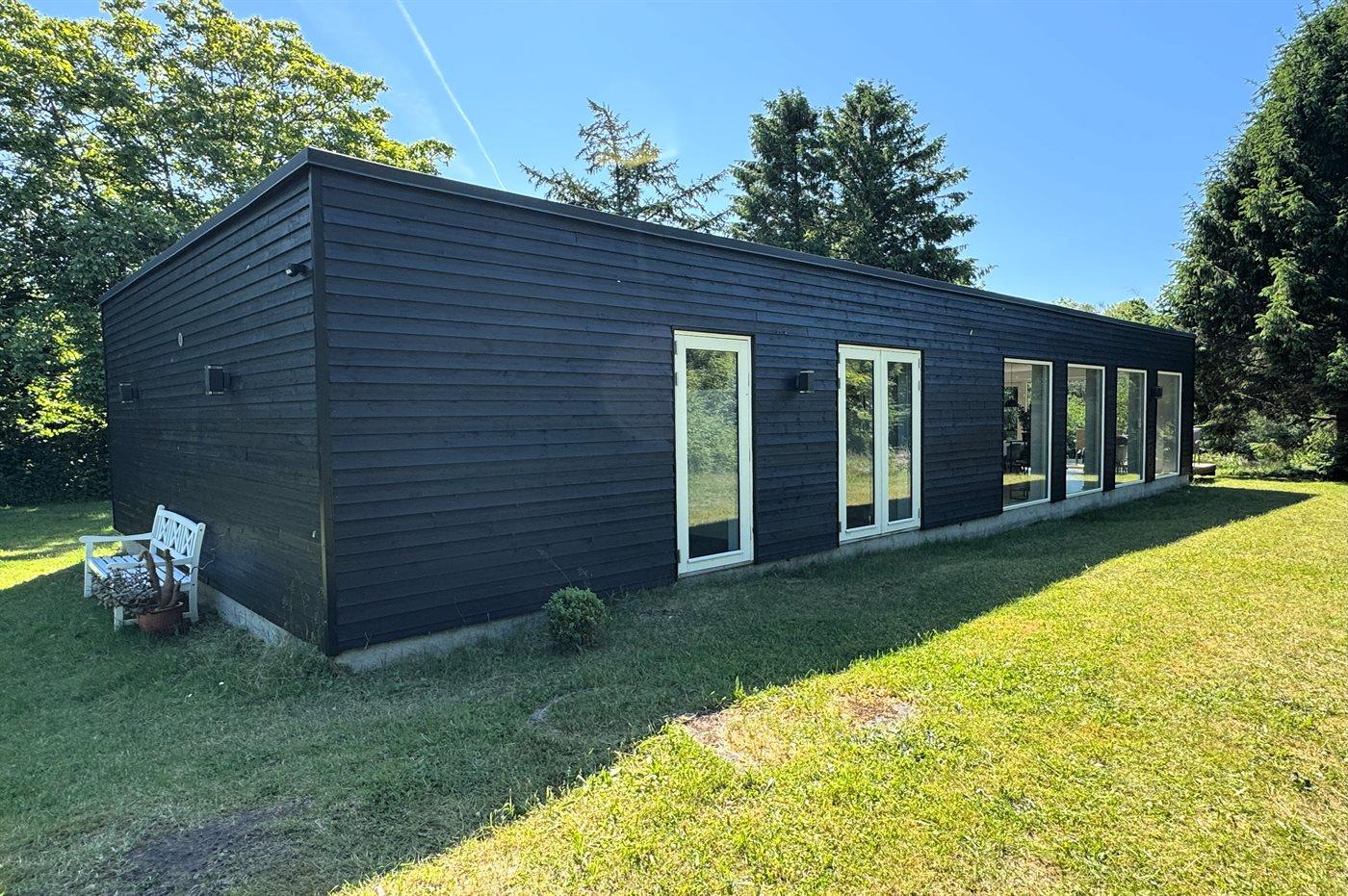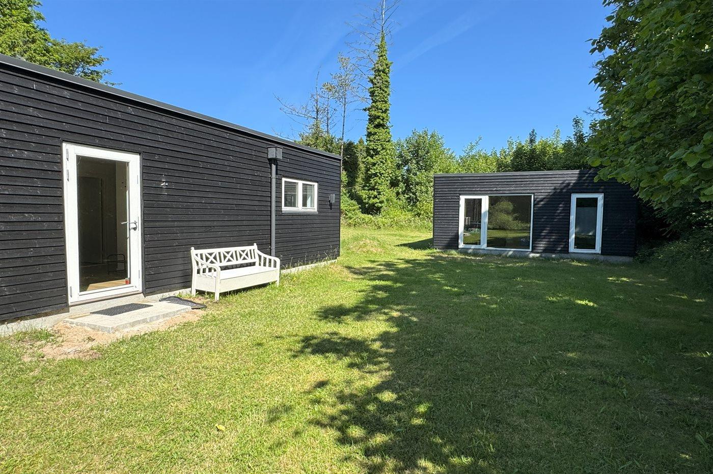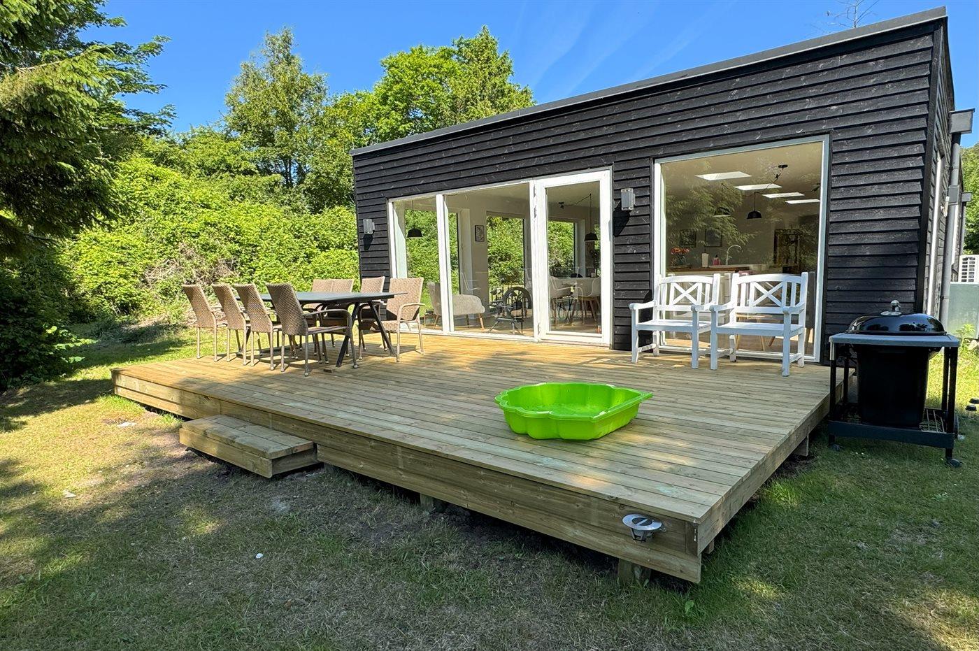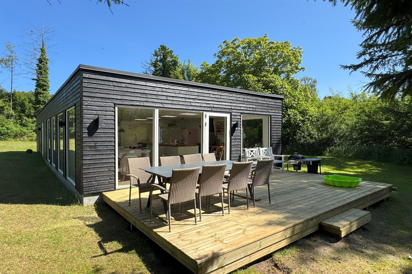 Moderne sommerhus i Ebeltoft med plads til to familier og egen sø i naturskønne omgivelser.
