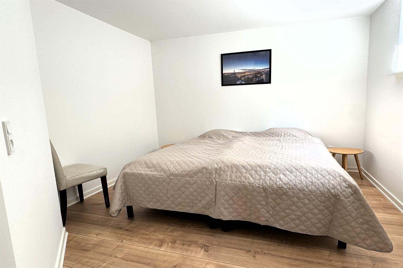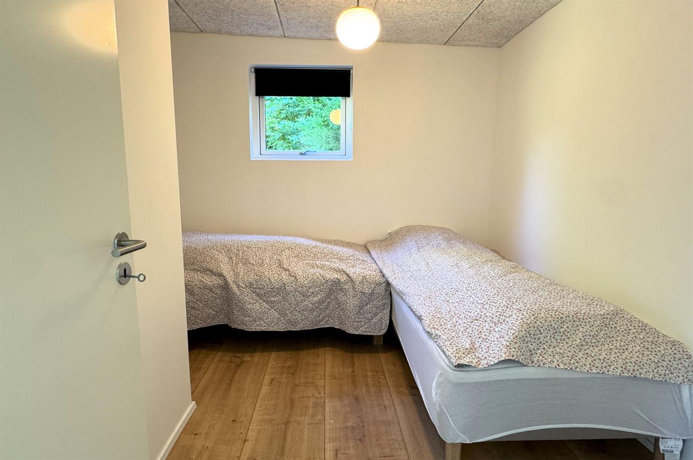 Der er i alt 5 soveværelser. Sovepladserne fordeler sig på: 4 sovepladser i dobbeltsenge. 4 sovepladser i enkeltsenge. 2 sovepladser i sovesofa (dobbelt).