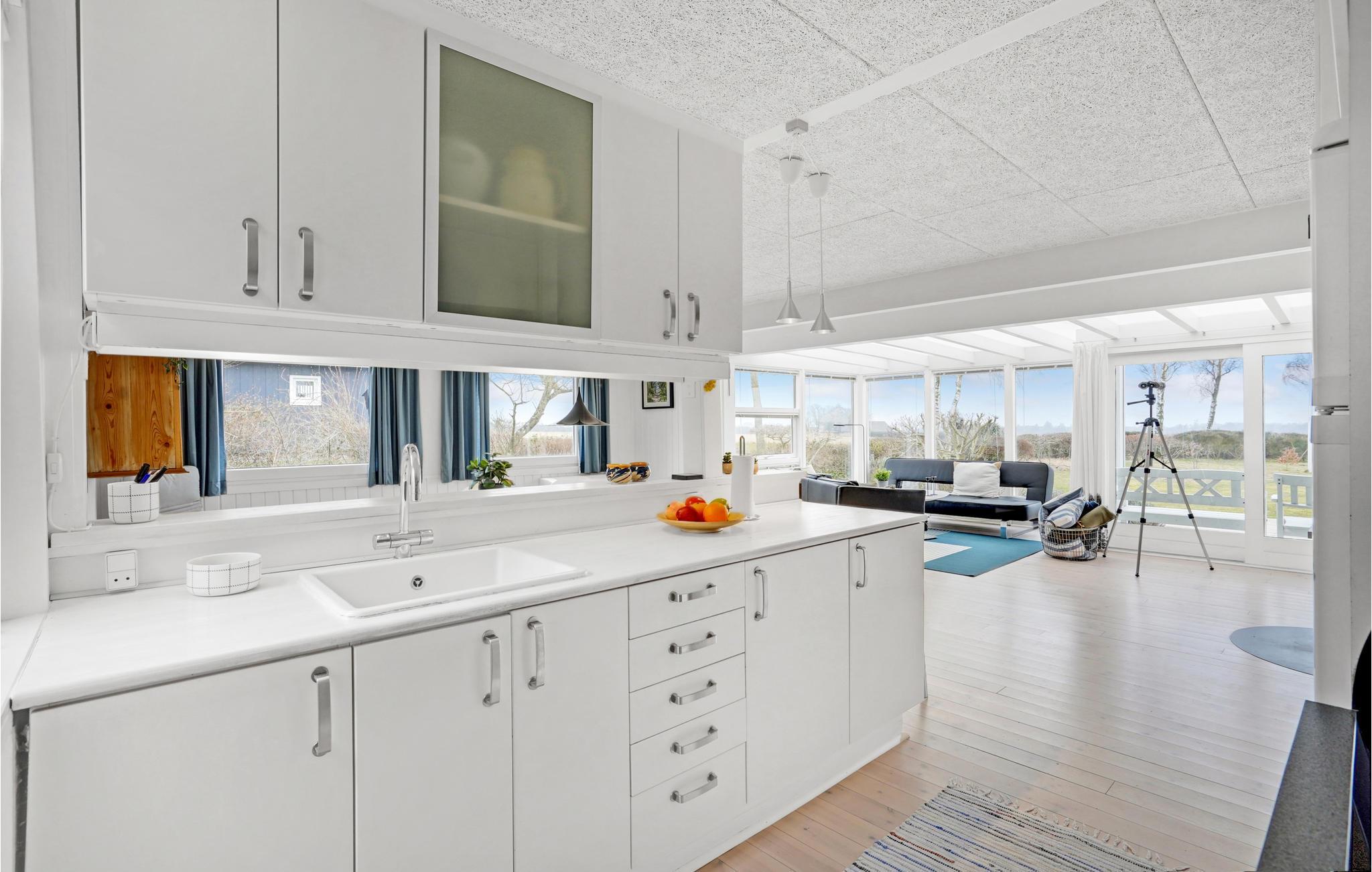 Her har I kun fokus på hinanden. Det dejlige hus på en idyllisk naturgrund i Nationalpark Mols Bjerge lover fantastisk nærvær og er det perfekte sted til naturglade børnefamilier, der holder af friluftsliv. Huset er en drøm af hvid med blå farveelementer, der giver kant og personlighed. De indbydende, lyse værelser skaber en hyggelig ramme om en fredfyldt tid i jeres eget tempo. Slap af med en smuk udsigt over haven, sæt jer godt til rette med et spil og bag kage sammen med børnene. Gå ud på terrassen med den nybagte lune kage og nyd en dejlig eftermiddagsstund med kig til grønne trækroner, store vidder og hav. Bagefter kan børnene spæne rundt i haven, slå sig løs i legetårnet og forsøge at nå skyerne på gyngerne.