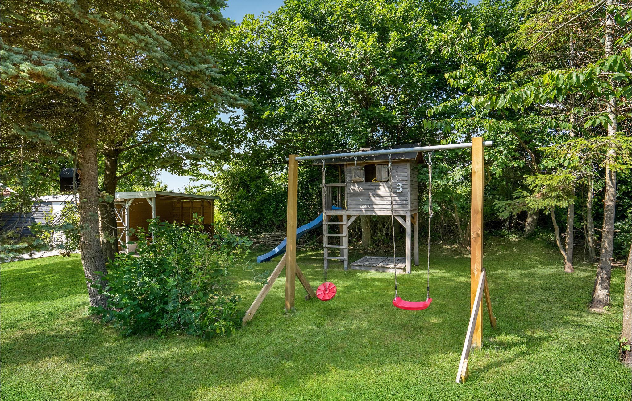 Hyggeligt feriehus i Ebeltoft ved Nationalpark Mols Bjerge med stor have, legetårn og tæt på både by og strand.