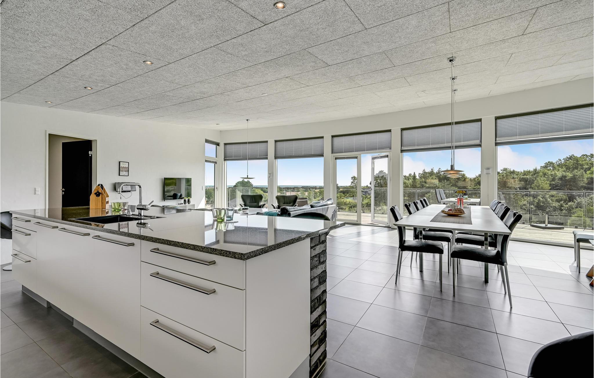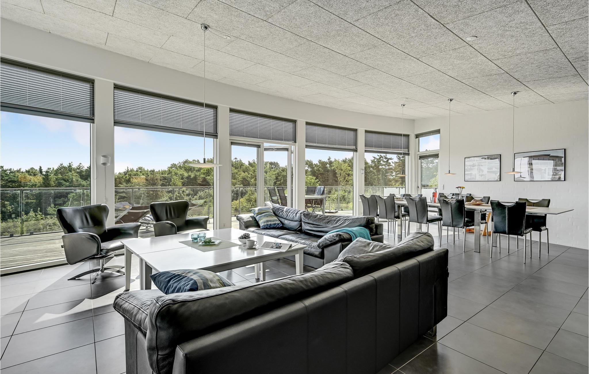 Omgivelserne er helt forrygende ved dette attraktive hus, som har plads til en større familie eller vennegruppe, så der er lagt op til en ferie, som især kommer til at huskes for en magisk beliggenhed. Boligen er lys, enkel og moderne med sort/hvide kontrastfarver i indretningen, så her virker alt roligt og behageligt. Trumfkortet er panoramavinduerne i opholdsområdet, som giver jer den skønne udsigt dagen igennem. Efter en lang dag på farten kan I sætte jer til rette i spabadet eller saunaen og bløde de ømme muskler op.