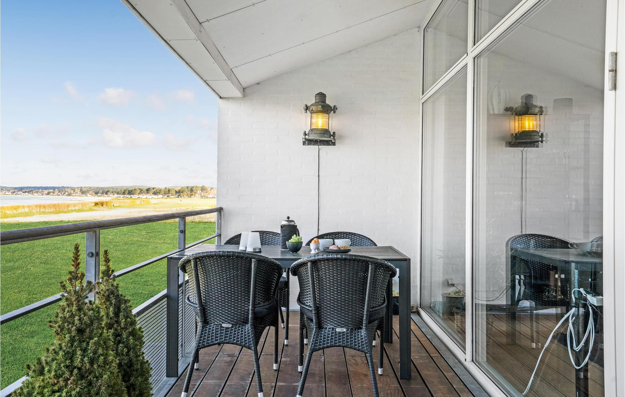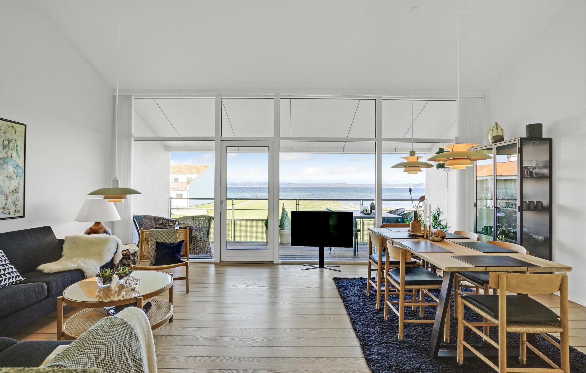 Moderne ferielejlighed med panoramaudsigt og terrasse tæt på Ebeltoft Strand.