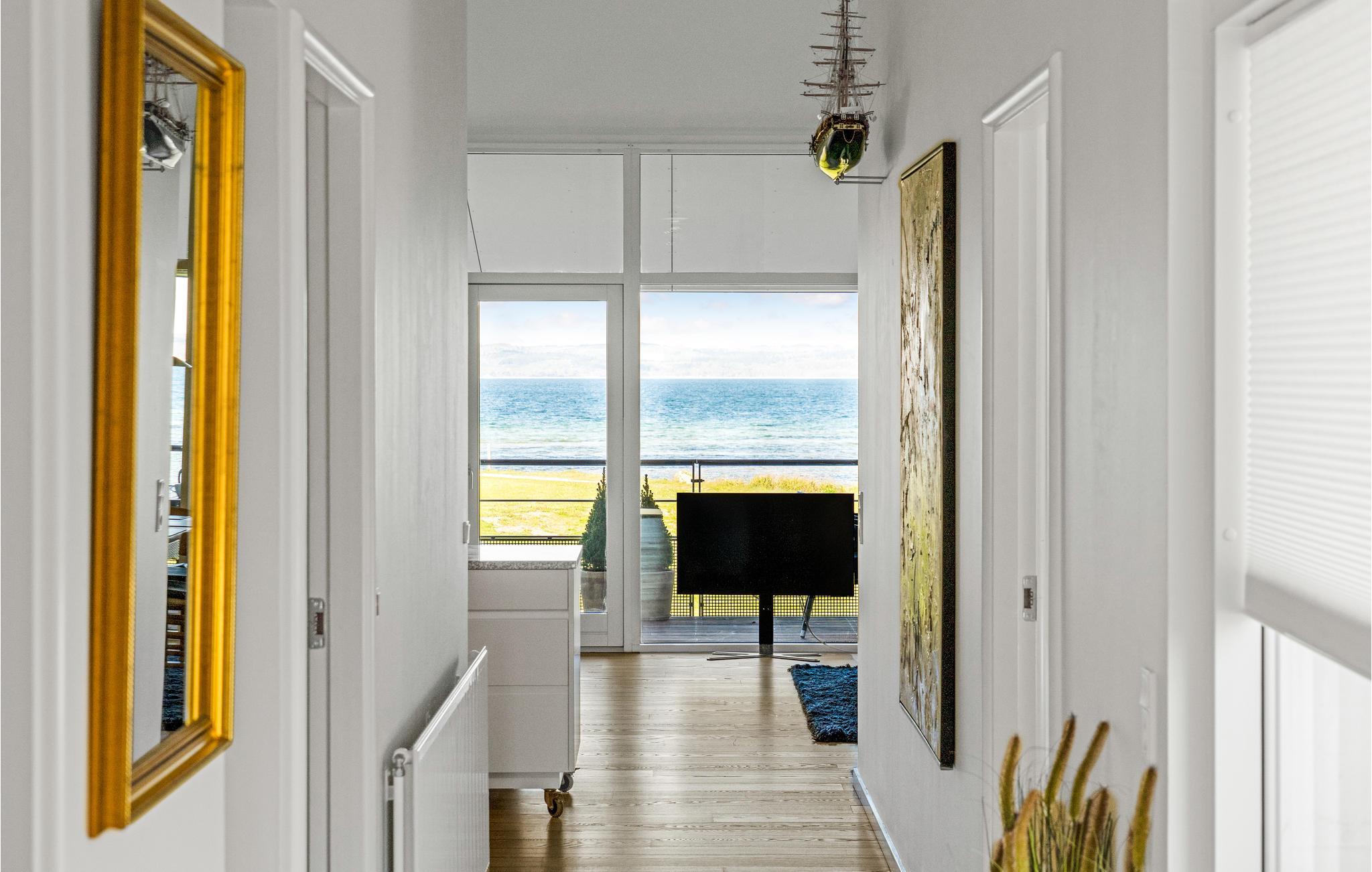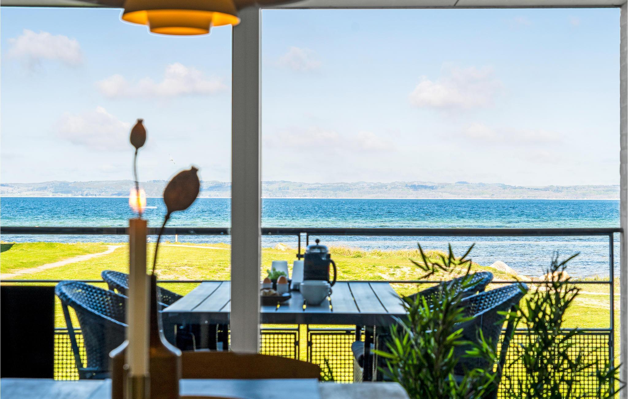 Nyd den fantastiske solnedgang fra denne ferielejlighed i første række til vandet og med panoramaudsigt over Ebeltoft Vig.