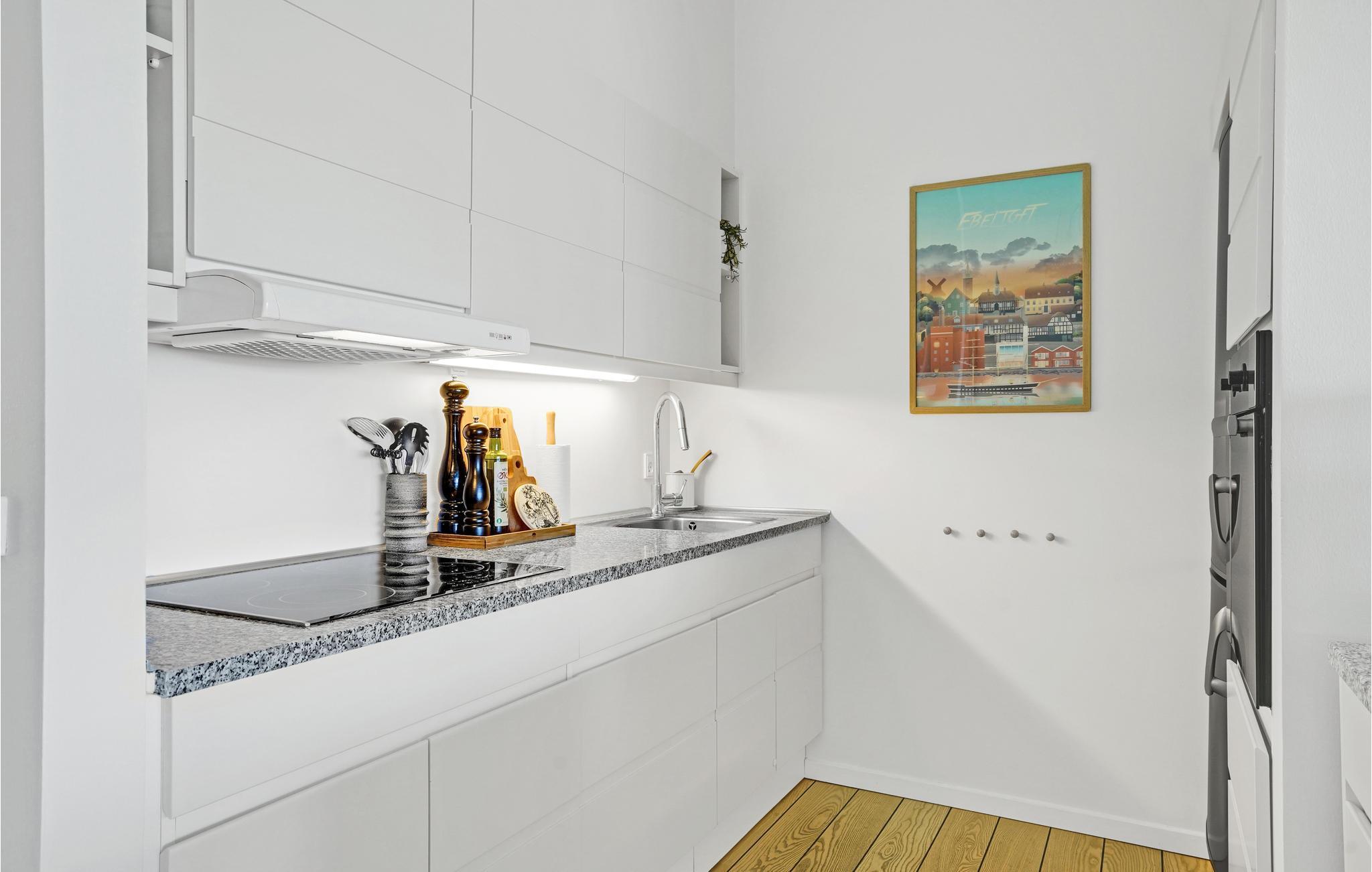 Lejligheden er moderne møbleret med kvalitetsmøbler, der giver god komfort under ferien. Her kan I holde den ideelle afslapningstur, hvad end I er et par eller en familie, som gerne vil bo centralt og nær en dejlig sandstrand. Det veludstyrede køkken giver jer mulighed for at lave lækre madanretninger, og hvorfor ikke nyde dem ude på den dejlige terrasse, når vejret er til det - alternativt kan I sidde i den dejlige spiseafdeling indenfor, hvor udsigten også kan betragtes. Har I cyklerne med på ferie, kan I låse dem ind i cykelskuret.