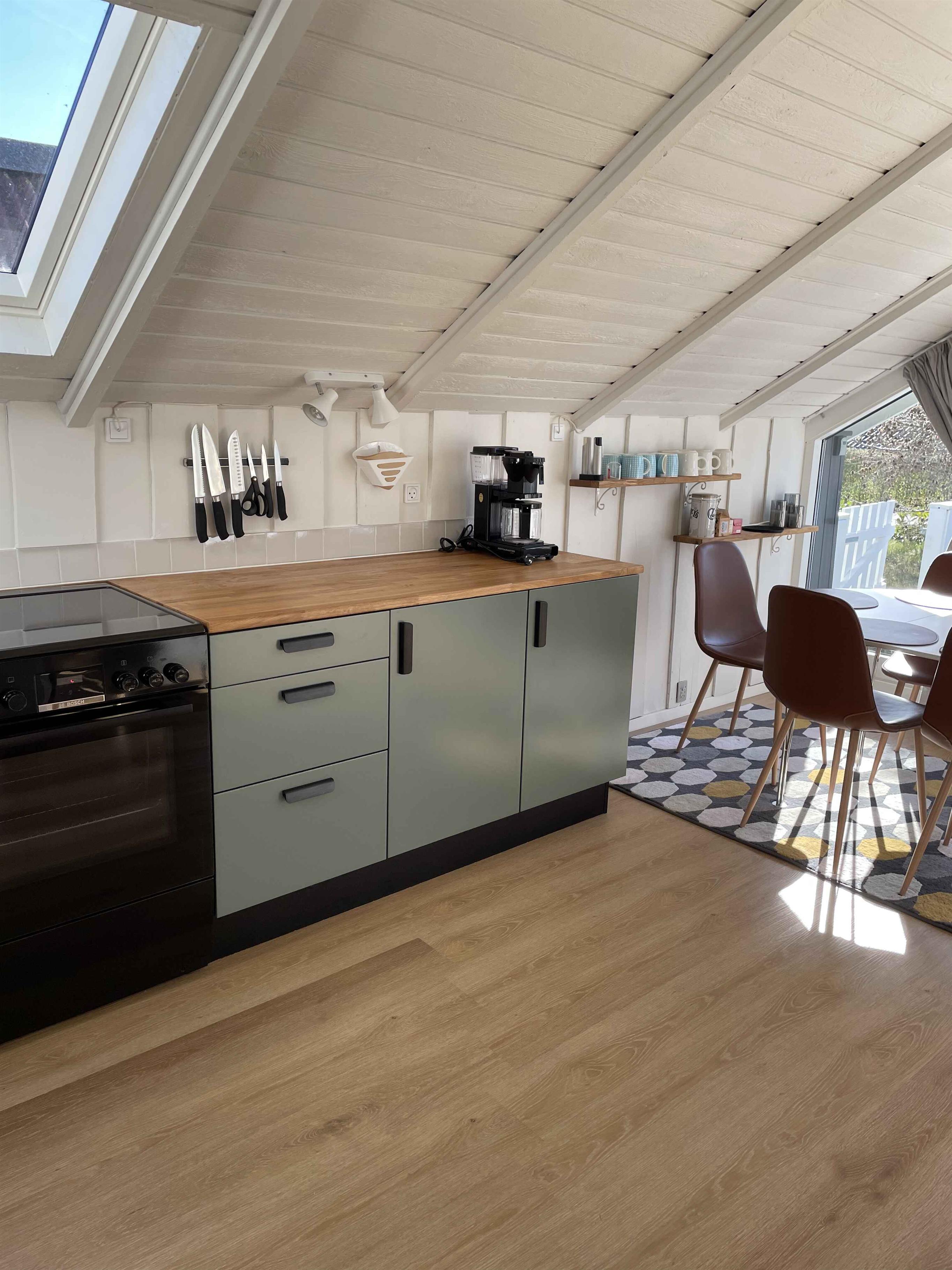 Dette sommerhus i Ebeltoft tilbyder en ideel ramme for en afslappende ferie tæt på strand, indkøb og den lokale bager. Med 54 m² passer huset perfekt til en lille familie eller et par, der ønsker et roligt ophold i naturskønne omgivelser. Huset har to soveværelser, med i alt 4 sovepladser. Badeværelset er funktionelt, og køkken/alrum er praktisk indrettet til samvær og madlavning under ferien. Sengelinned, håndklæder og viskestykker findes i huset - ved afrejse skal det brugte linned efterlades i bruseren. En morgenterrasse giver mulighed for at nyde dagens første lys og måske få et glimt af rådyr og andet vildt. På eftermiddags- og aftenterrassen er der gasgrill og god plads til hyggelige stunder efter en dag ved stranden. Den store naturgrund omkring huset skaber en afslappet atmosfære og giver plads til leg og udendørs aktiviteter. Lille hund er velkommen, hvilket gør huset ideelt for dyrevenlige familier. Med en luft/luft varmepumpe sikres et behageligt indeklima året rundt. Huset har desuden gratis internet, så det er nemt at holde kontakten eller streame indhold under opholdet. Stranden ligger kun 400 meter væk og indbyder til badeture, afslapning eller en frisk gåtur langs kysten. Ebeltoft, med sine brostensbelagte gader og maritime charme, er tæt på og tilbyder små butikker, restauranter og kulturelle oplevelser som Fregatten Jylland og Glasmuseet. Mols Bjerge Nationalpark er en kort køretur væk og tilbyder et varieret landskab med et rigt dyreliv. Her kan man tage på vandre- eller cykelture og nyde den storslåede natur. Dette velholdte sommerhus kombinerer komfort, natur og bynærhed, hvilket skaber de perfekte rammer for en afslappende og mindeværdig ferie. Med praktiske faciliteter som køkkenartikler inkluderet, kan gæster fokusere på at nyde opholdet. Huset er et oplagt valg for dem, der søger et hjemligt og funktionelt ferieophold i smukke omgivelser.