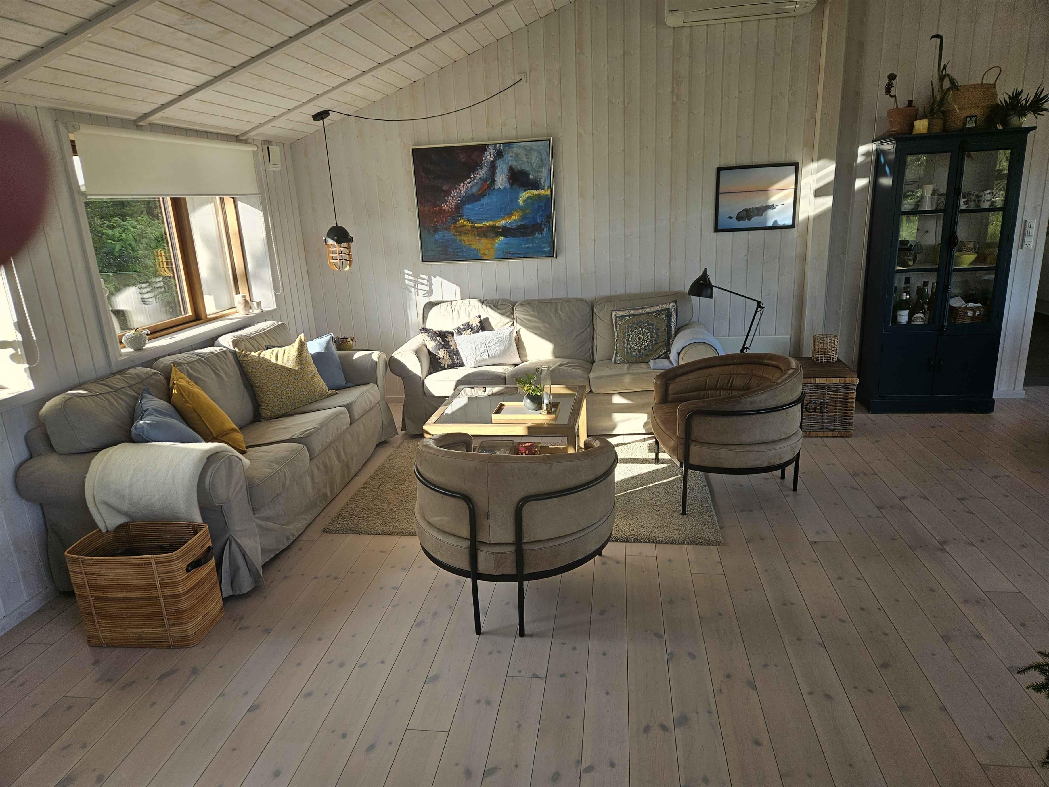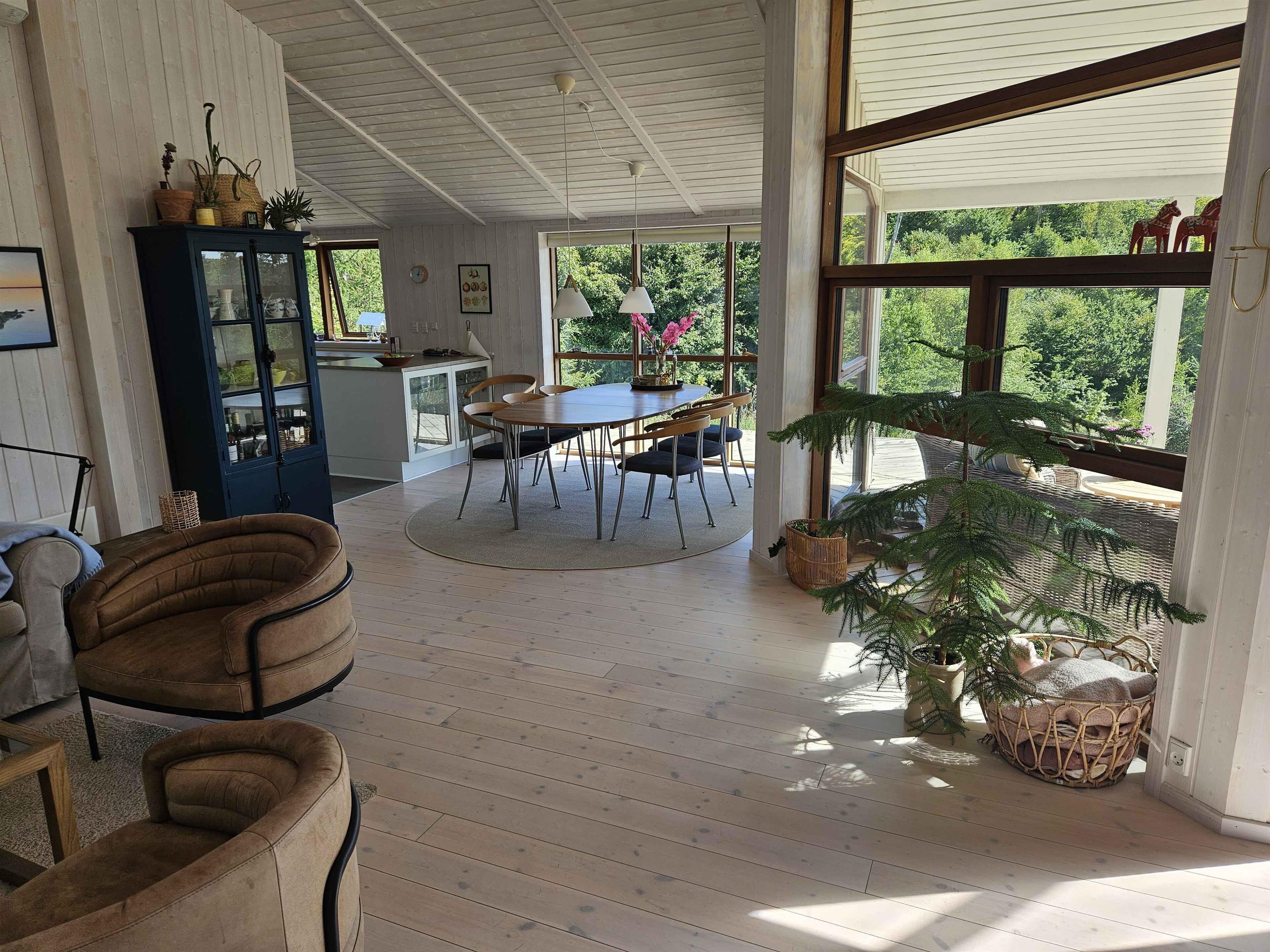 Femmøller ved Ebeltoft – fantastisk feriehus, højt beliggende med unik udsigt, stor stue, køkken og spiseafdeling, 3 værelser, 2 badeværelser den ene med Spa, internet, aktivitetsrum med bordtennis, dart, play-station 5, 2 terrasser og med shelter, hvis I selv eller børnene har lyst til at prøve at sove udenfor. Huset er veludstyret med bl.a., vaskemaskine, opvaskemaskine, Expressomaskine, mikrobølgeovn og har også Quooker-vandhane. Nyere hus (2018) med helt speciel høj beliggenhed, og en fantastisk udsigt. Huset ligger i Femmøller/Mols Bjerge og kan rumme 8 personer. Her er tre dobbeltværelser med dobbeltseng. I et aktivitetsrummet er der en 2 personers sovesofa (slås ud fra sofa - kan også bruges som alm. sofa), og her er også en stor hems med madrasser til to personer, og hvor mindre børn også kan boltre sig. Huset er på hele 146 m2, har gulvvarme og med varmepumpe. Udover at ligge midt i en enestående natur, så er huset fuldt udstyret til den perfekte ferie. Her er åbent køkken i forbindelse med den store stue, hvor der bl.a. er brændeovn. Der er TV med både danske og internationale kanaler, ligesom der naturligvis er internet. Køkkenet er fuldt udstyt med opvaskemaskine mv. Der er installeret en Qooker ved køkkenvasken – så ud over at tappe koldt/varmt vand fra hanen, kan I også tappe vand på 100 grader fra samme hane. Der er flere terrasser udenfor, hvor man kan sidde og slappe af og nyde den helt unikke udsigt. På den åbne terrasse på 15 m2 er en markise med motordrev. I tilknytning til denne terrasse er der et shelter med plads til 4 personer. Der er naturligvis også havemøbler og en grill, et stort, flytbart bål-fad og en Morsø Pizzaovn. Har I har lyst til at overnatte ude og komme tættere på naturen, er der en shelter (helt tæt på huset) ved vest-terrassen med fin udsigt mod øst. I huset er der to badeværelser med gulvvarme, og i det ene er der en to-personers spa, der giver mulighed for dejlig afslapning og samvær. Herudover er der en udendørs bruser, hvis du foretrækker at nyde den friske luft i kombination med dit brusebad. Hvad enten du er til afslapning i spa’en eller ved brændeovnen med fantastisk udsigt, eller du er til lidt mere aktiv ferie, så er dette huset for dig. I aktivitetsrummet er der både en PlayStation 5, bordtennis, tv, dartspil og bobspil. Der er mange ting at se I Ebeltoft og omegn. Fregatten Jylland, Det gamle Rådhus, den hyggelige bymidte, glasmuseet og Ree Safaripark. For børn og barnlige sjæle kan en tur til Djurs Sommerland også anbefales. I kan også begive jer ud på en vandretur på Mols Bjerge-stien, der er en 60 km vandresti, certificeret som Leading Quality Trail - Best of Europe. Det betyder, at vandreoplevelsen er af høj kvalitet med store natur- og kulturhistoriske seværdigheder undervejs. Stien er inddelt i tre dagsetaper på hver ca. 20 km. Kalø-etapen, Bjerg-etapen og Ebeltoft-etapen. Mols Bjerge-stien er bundet sammen af buslinje 123, så det er let at komme tilbage til sit udgangspunkt. Download app’en Nationalpark Mols Bjerge hjemmefra - så har I et kort med jer på telefonen. (nationalparkmolsbjerge.dk)