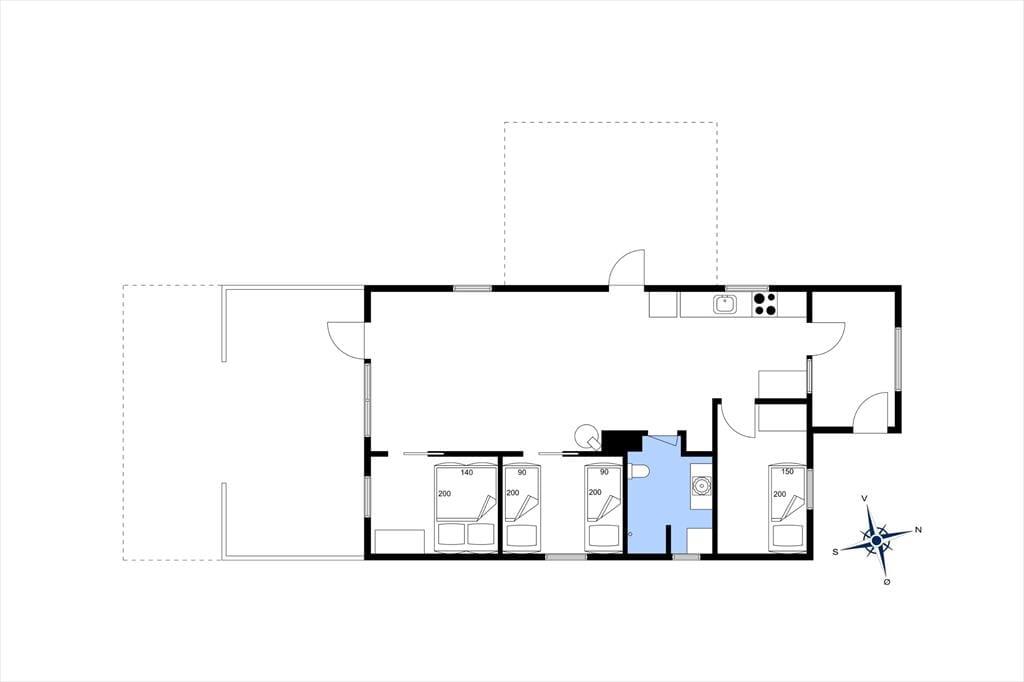 Der er gjort noget ekstra ud af indretningen i det 70 m2 store hus, så rummene emmer af hygge og velvære. Køkken og stue er slået sammen, så når du står ved gasblussene og kræser om maden, kan du sagtens nyde samværet med resten af familien. Maden kan I sammen nyde ved spisebordet, der står i nærheden af Morsø-brændeovnen, og i sofaafdelingen har I mange komfortable siddepladser, hvis I vil se tv, læse eller løse krydsogtværser. På sommerhusets tre soveværelser har I en dobbeltseng, to enkeltsenge og en dobbeltseng at gøre godt med, og på badeværelset er der – foruden en bruseniche – en vaskemaskine, så feriegarderoben kan blive frisket op undervejs.