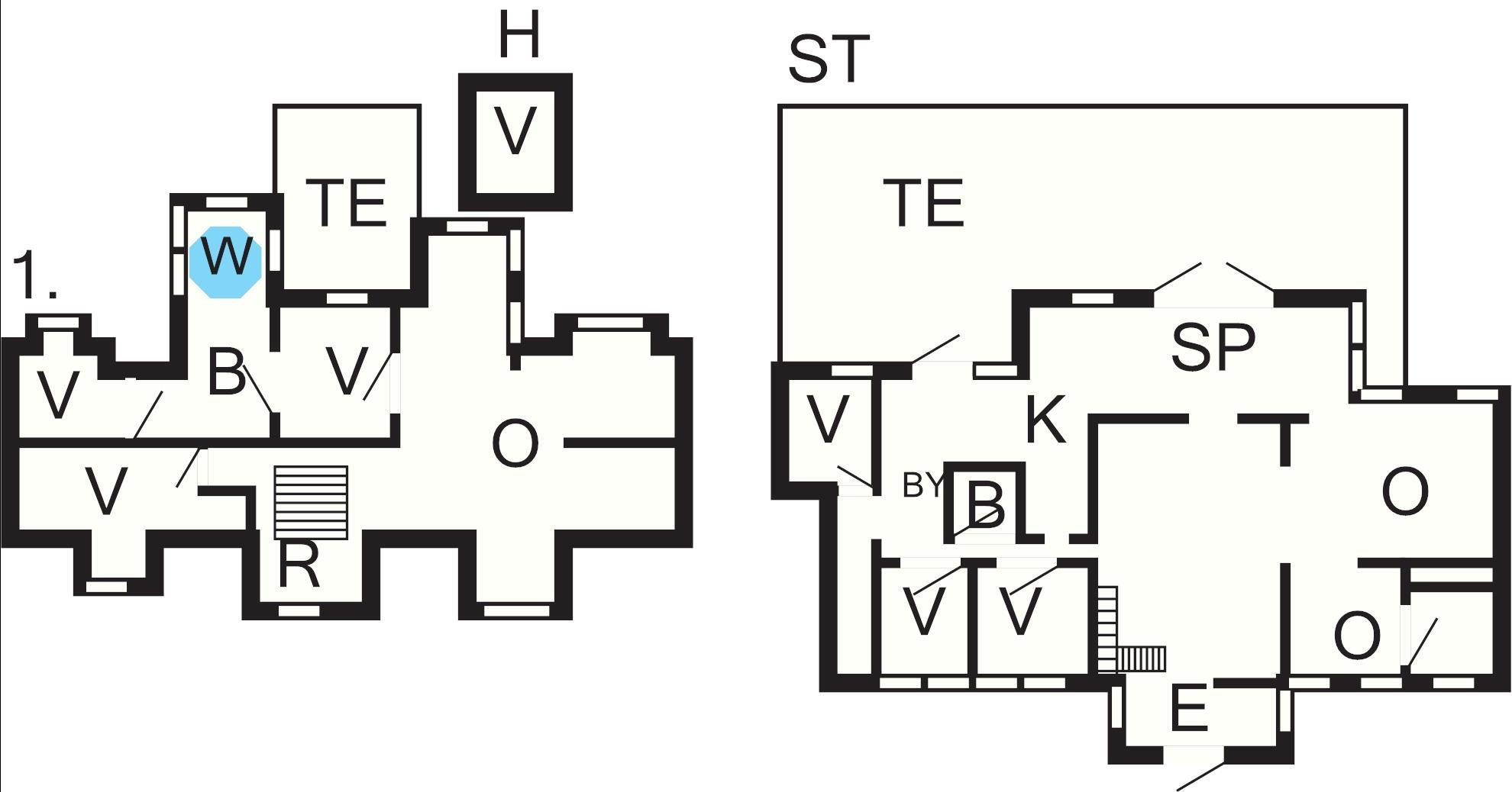 1 Opholdsstue: Pejs, brændeovn, dvd-afspiller, tv, høj stol