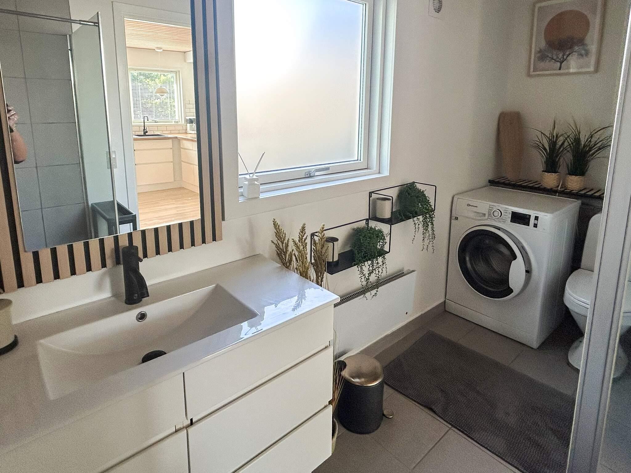 Bad/wc: Vaskemaskine, wc, håndvask, bruseniche