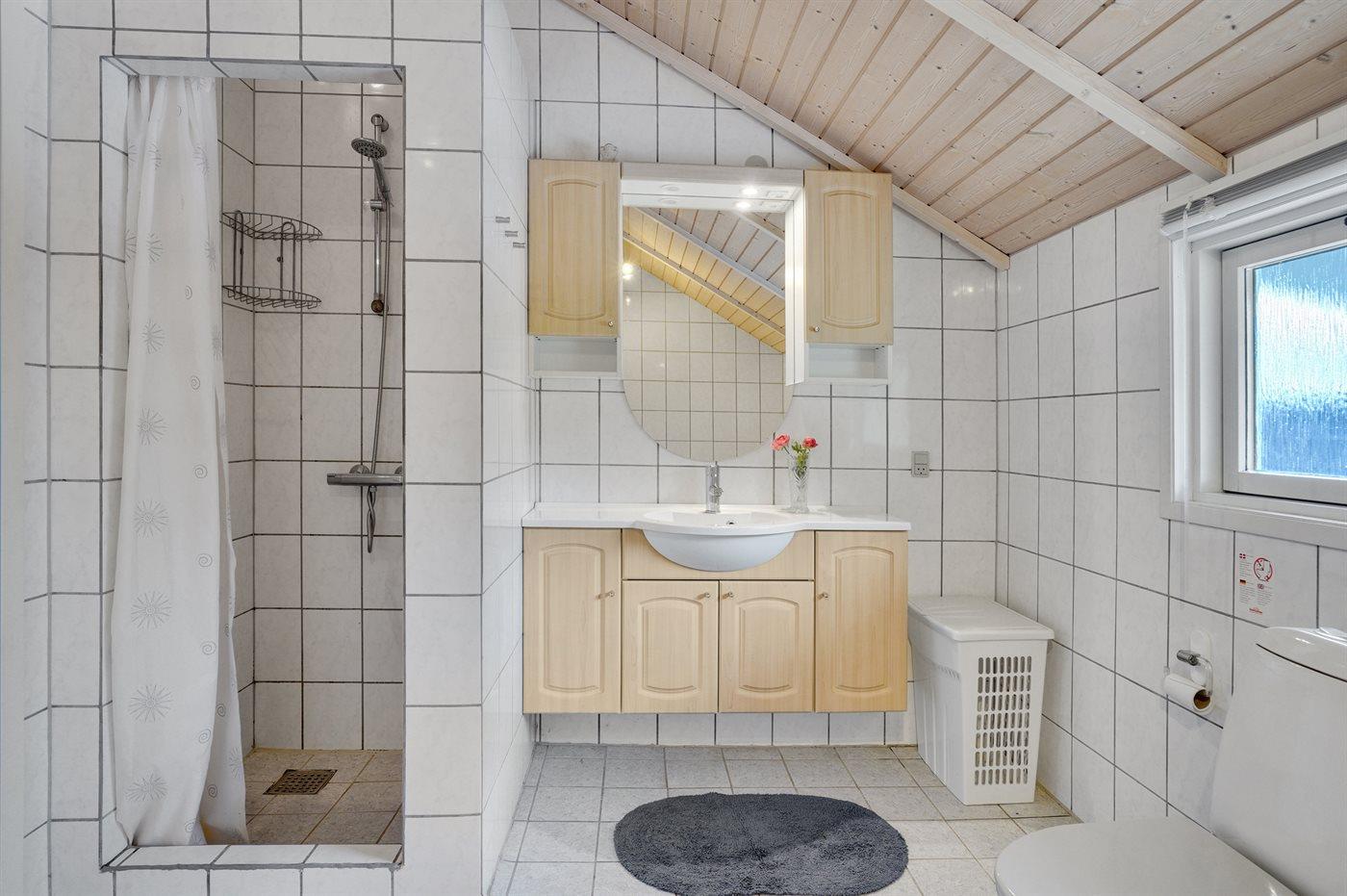 Der er 1 badeværelse med bruseniche og 2 toiletter, heraf 1 gæstetoilet. Der er gulvvarme på 1 badeværelse. I saunaen er der mulighed for afslapning.