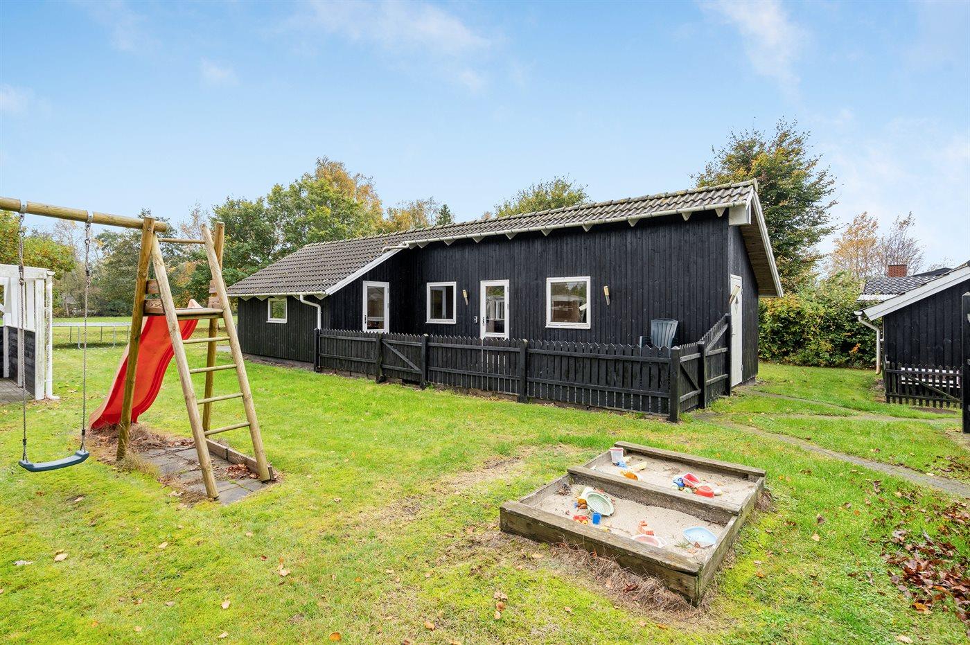 Hyggeligt sommerhus i Egense med stort legehus, aktivitetsrum og spa, perfekt til hele familien og hunden.