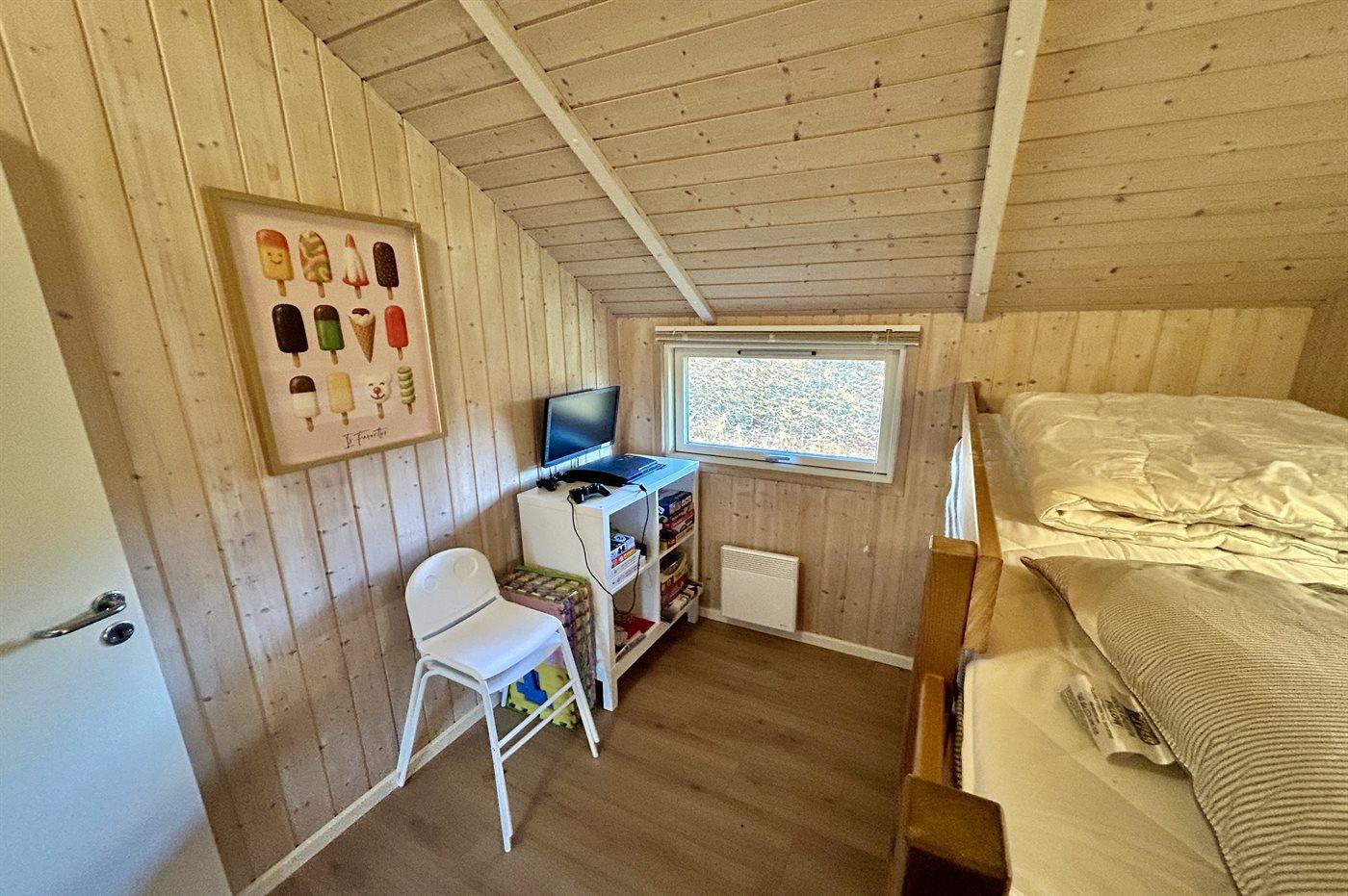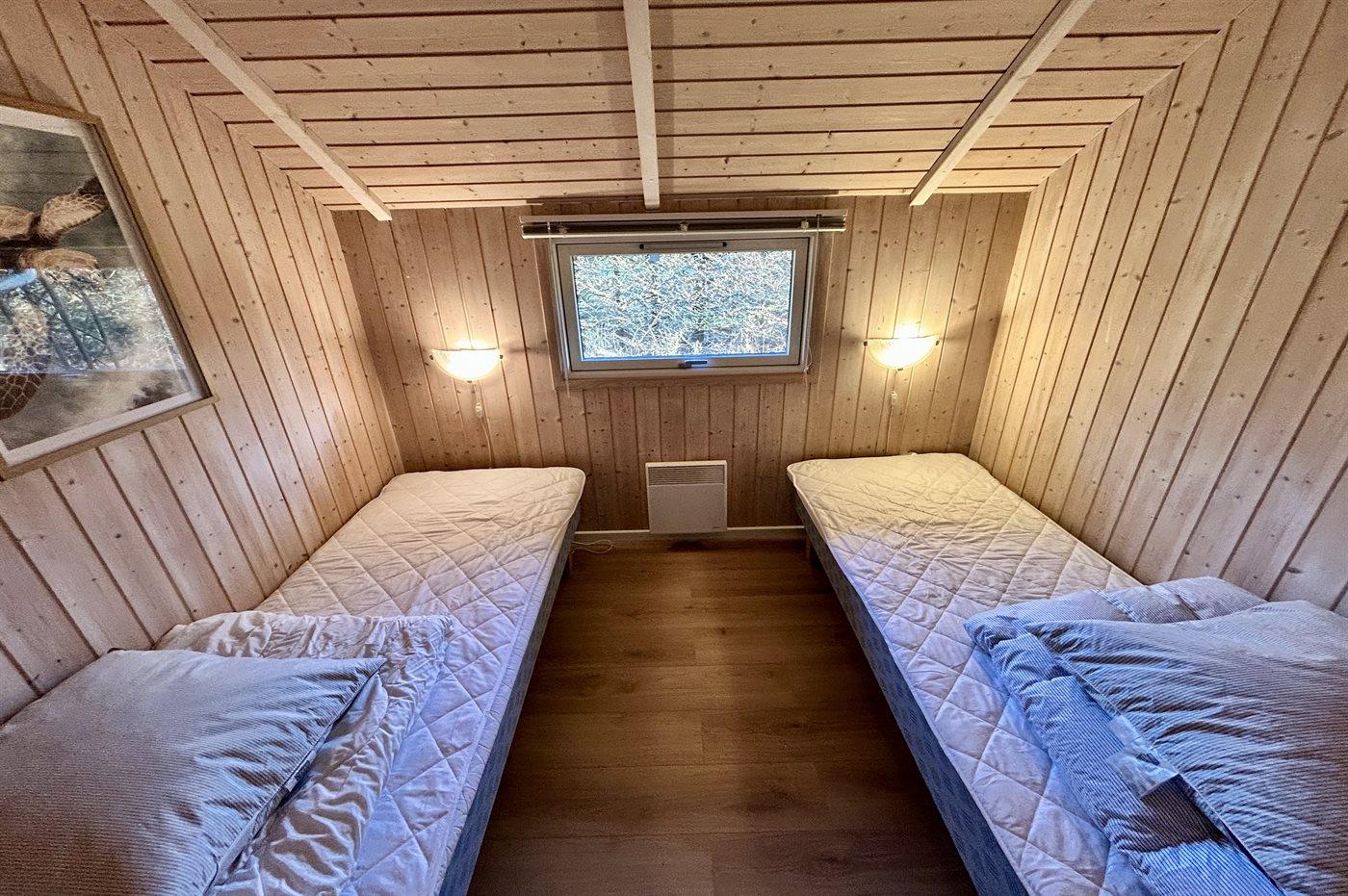 Der er i alt 5 soveværelser. Sovepladserne fordeler sig på: 4 sovepladser i dobbeltsenge. 4 sovepladser i enkeltsenge. 2 sovepladser i køjeseng. 4 af disse sovepladser befinder sig i et anneks (fordelt på 2 soveværelser). Derudover er der 1 stk. barneseng.