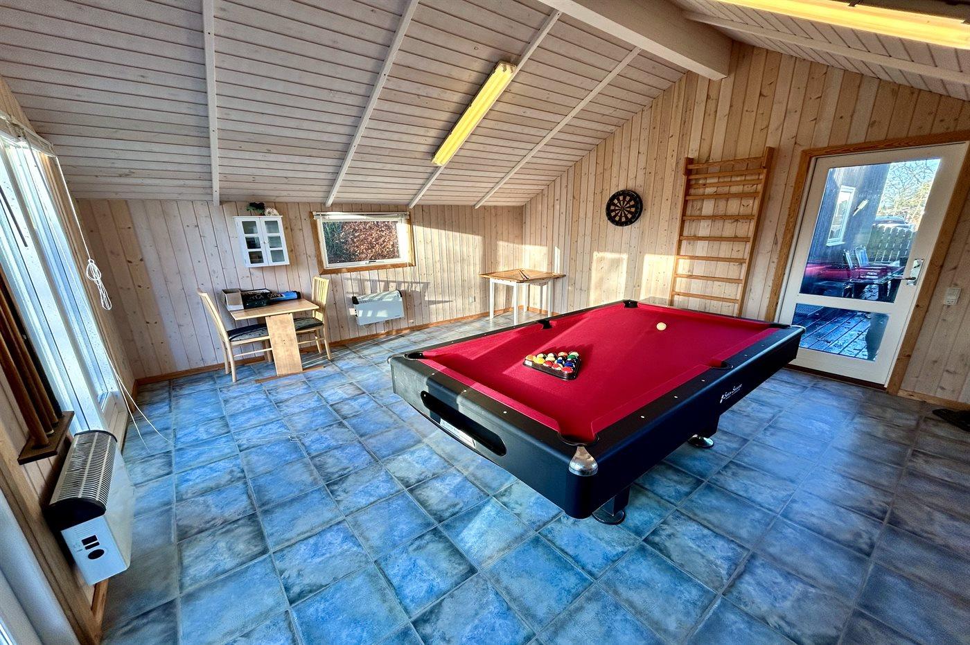 Et dejligt sommerhus med en stor lukket grund, hvor både voksne, børn og hunden kan boltre sig. Hvis I får problemer med at få børnene ind, skyldes det nok det store og fine legehus, som har både varme og lys. Der findes desuden et stort anneks med 4 sovepladser fordelt på 2 værelser samt 1 gæstetoilet. I annekset er der også et stort aktivitetsrum med forskellige spil samt motionsredskaber.
