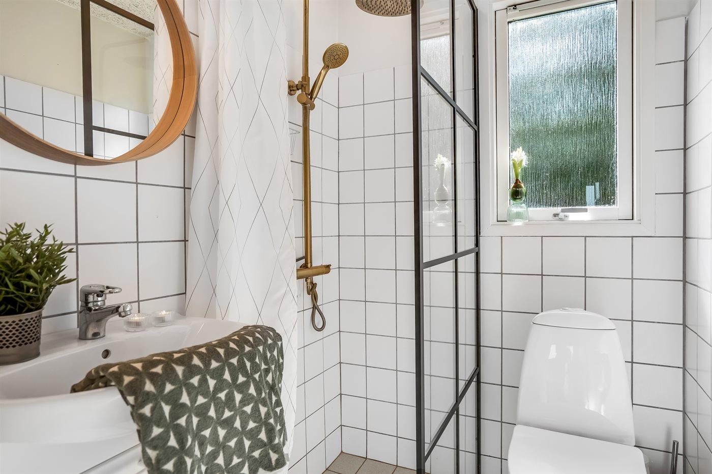 Der er 1 badeværelse med bruseniche og 1 toilet.. Der er gulvvarme på 1 badeværelse.