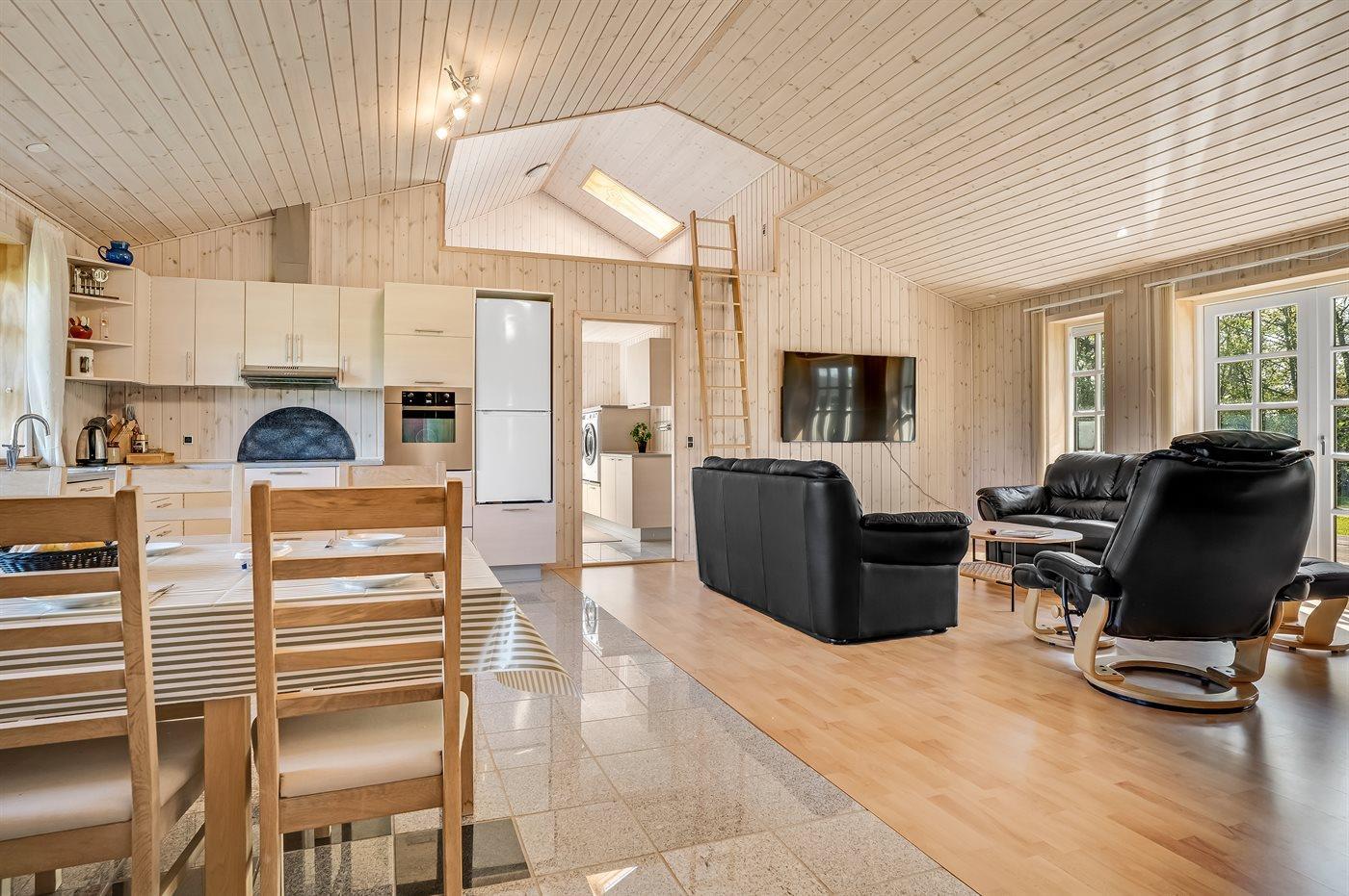 Sommerhuset egner sig til 6 personer. Ferieboligen er på 112 m² og er bygget i 2006. Det er tilladt at medbringe 2 husdyr. Ferieboligen er udstyret med 1 energivenlig luft til luft varmepumpe. Der er gulvvarme i entréen. Ferieboligen har vaskemaskine. Tørretumbler. Frysekapacitet på 64 liter. Der er desuden brændeovn.