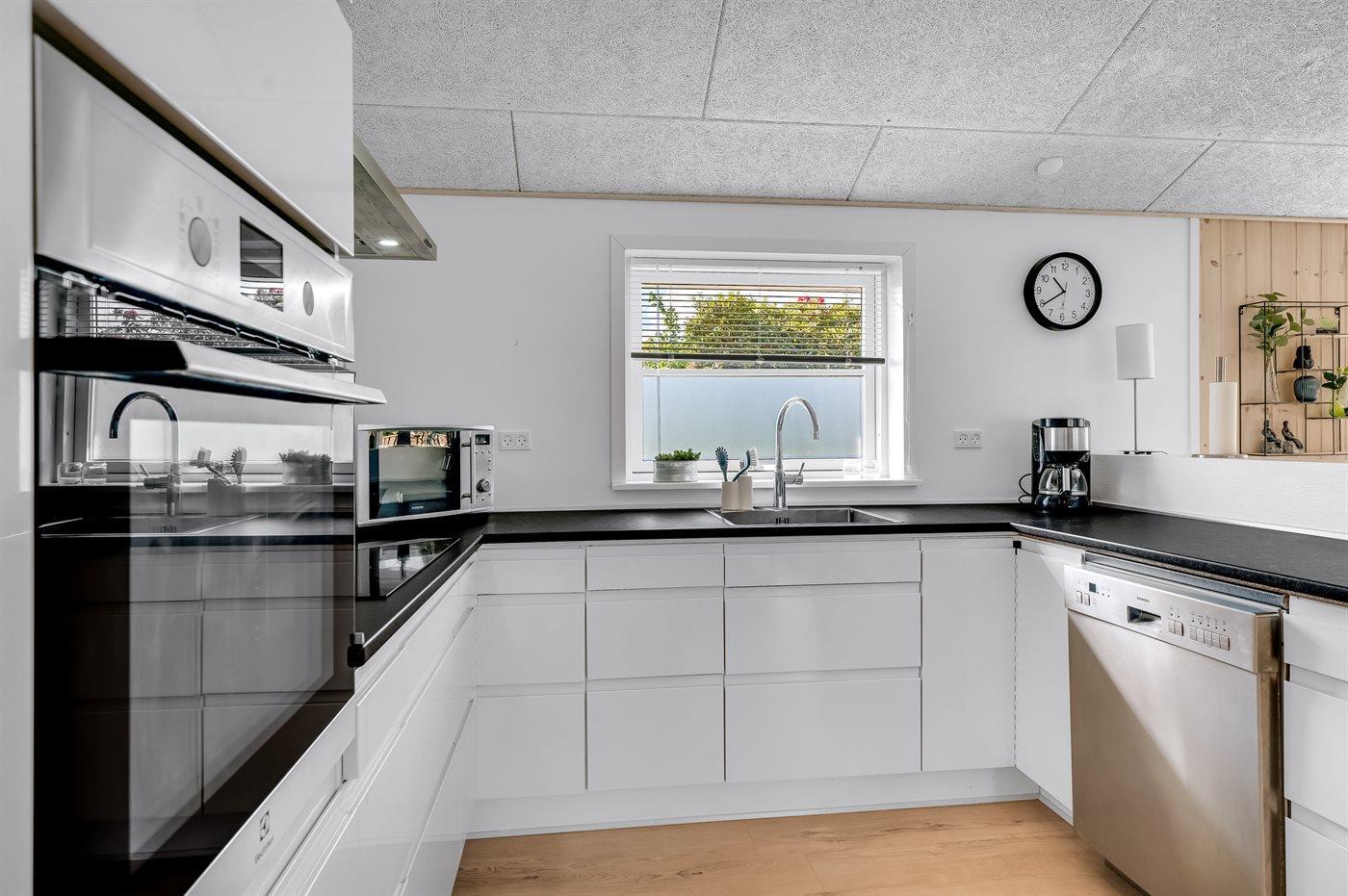 Køkkenet er udstyret med 1 køleskab. Der er 4 induktionskogeplader, varmluftovn, mikrobølgeovn samt opvaskemaskine.