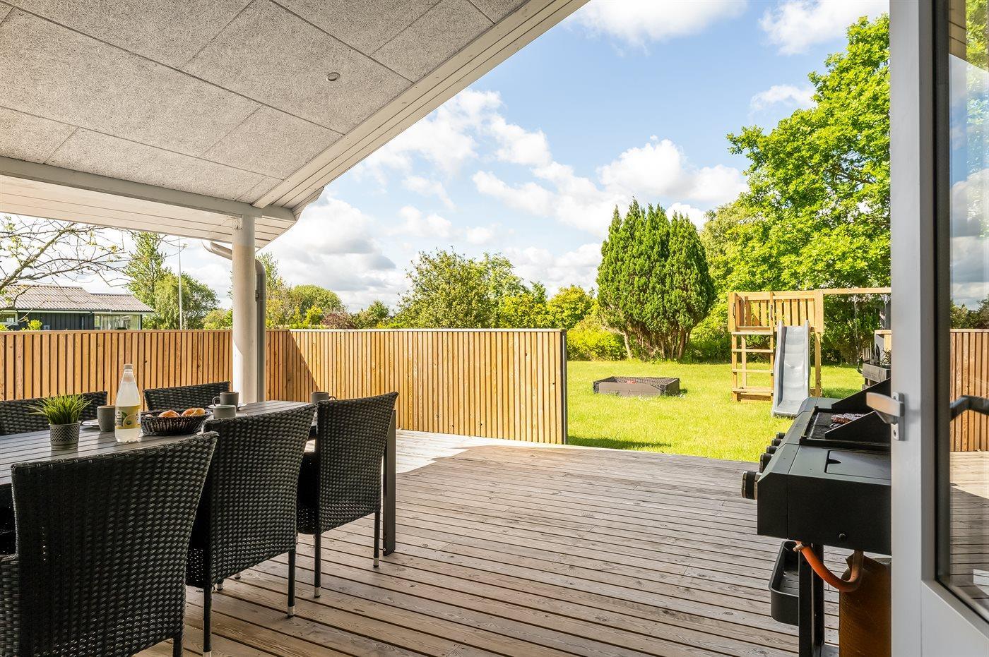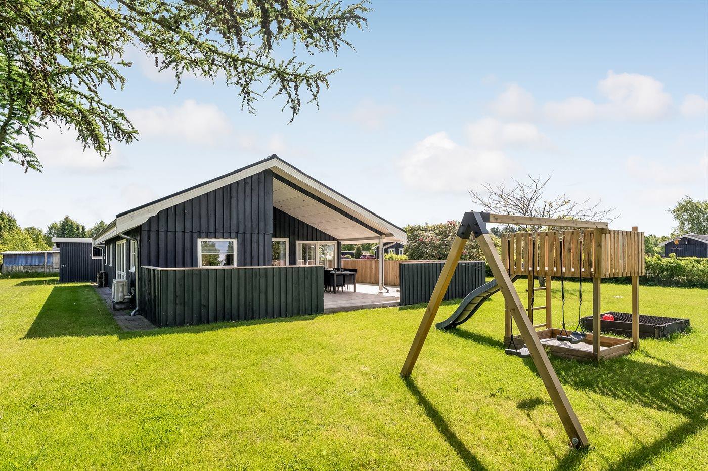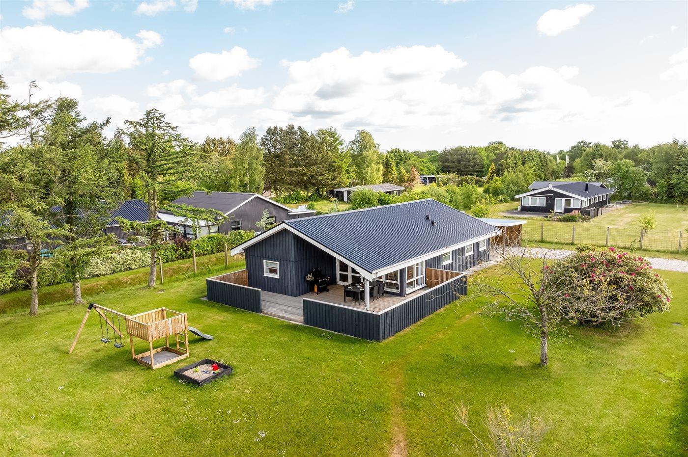 Ferieboligen er beliggende på en 1200 m² stor havegrund. Der er 850 m til havet. Der er 740 m til fjorden. Nærmeste forretning er beliggende i en afstand af 140 m. Der er en golfbane i en afstand af 3380 m. Til ferieboligen hører åbent terrasseareal. Desuden er der overdækket terrasse. Gynge. Sandkasse. Rutchebane. Grill til rådighed. Der er installeret stik til opladning af elbil. Type 2 stik. Med 11 kW ladeeffekt. Parkering ved ferieboligen.