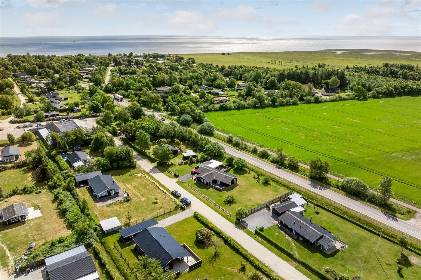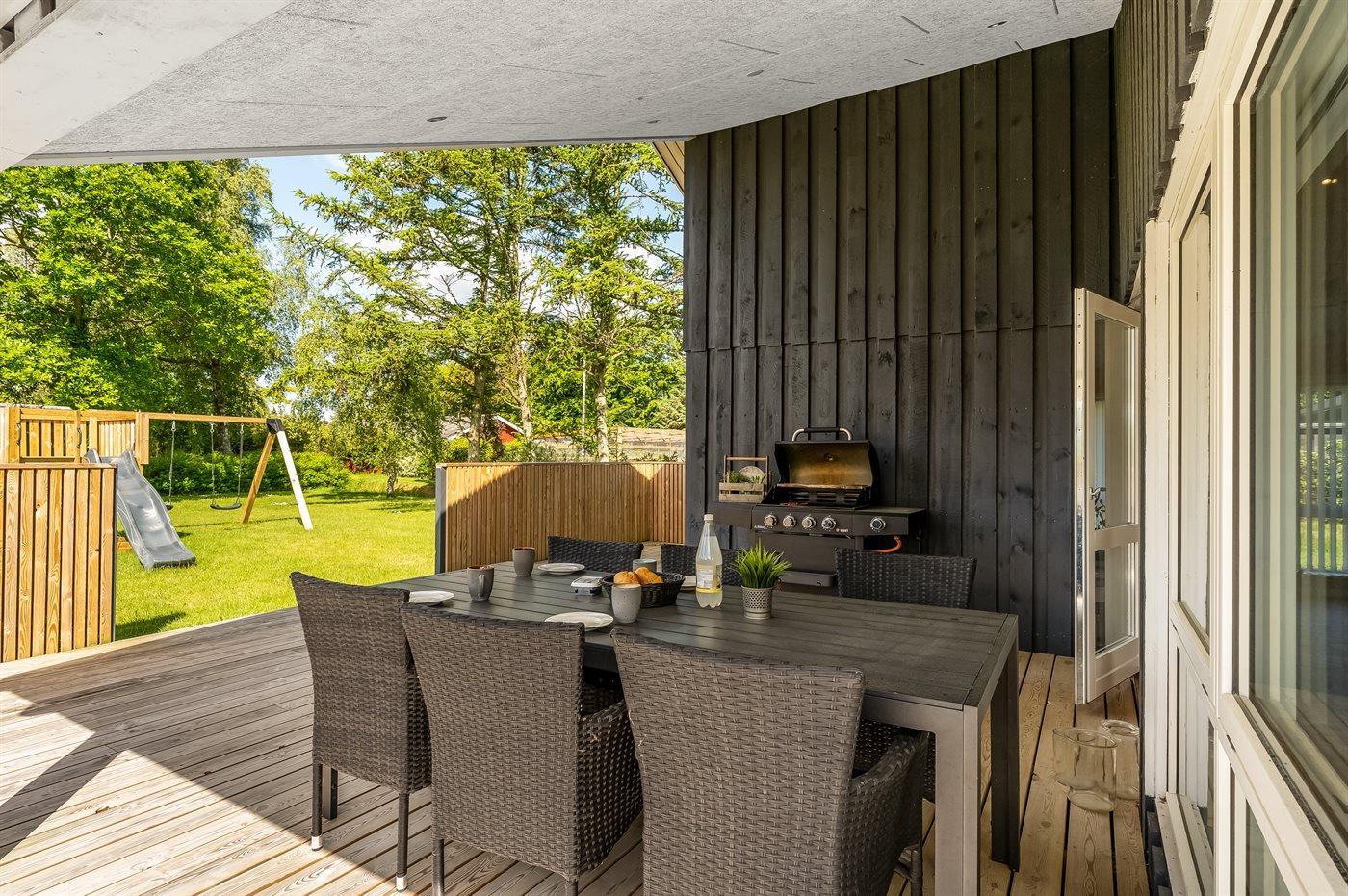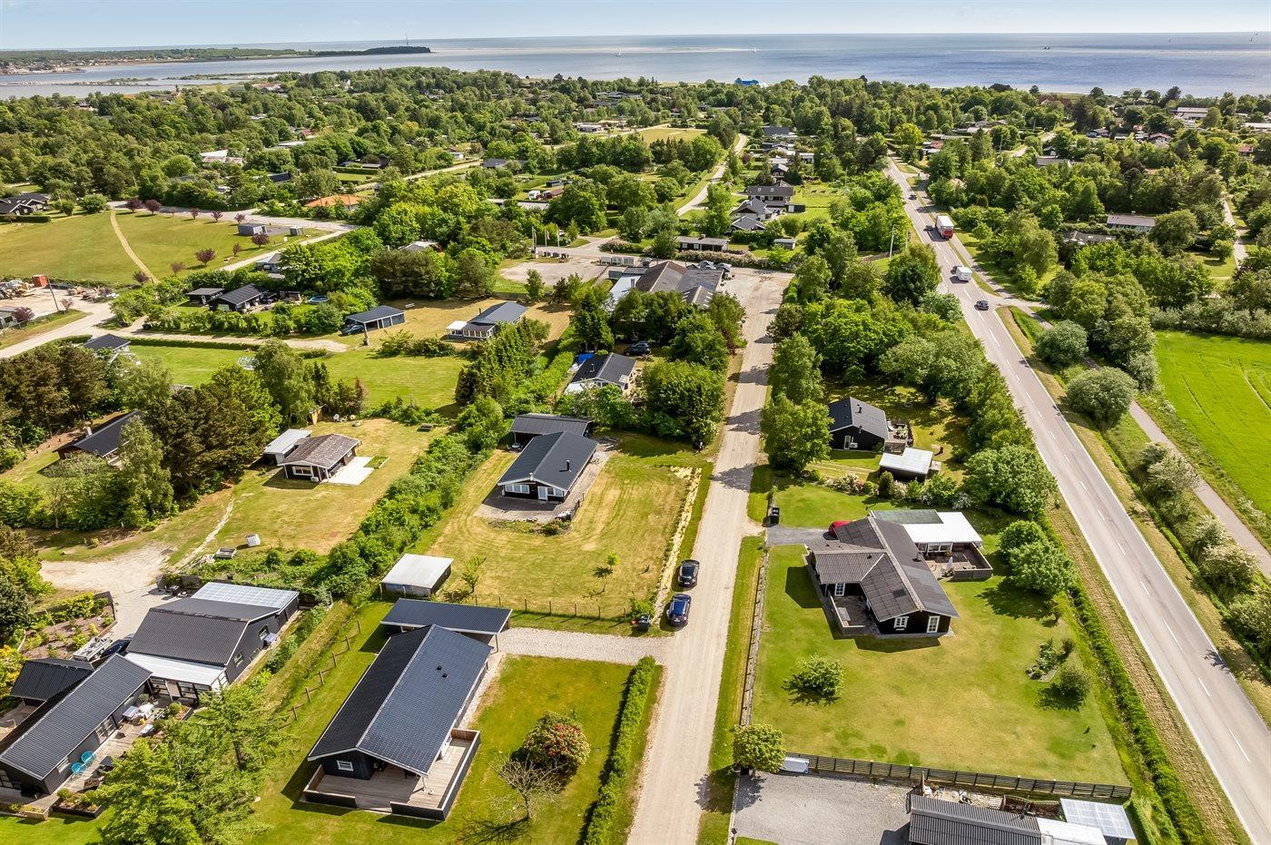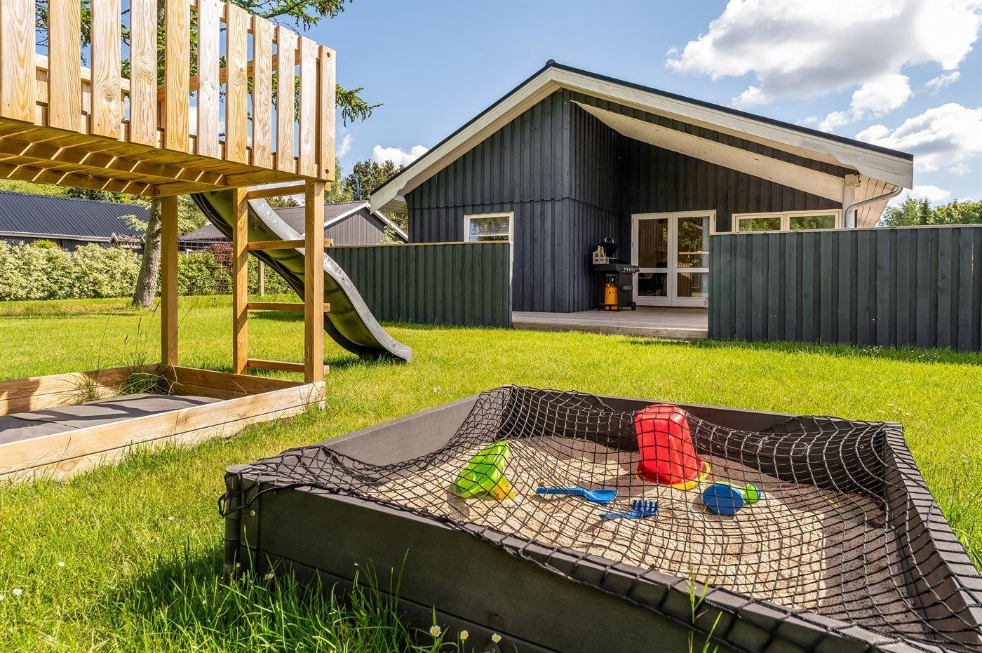 Ferieboligen er beliggende på en 1200 m² stor havegrund. Der er 850 m til havet. Der er 740 m til fjorden. Nærmeste forretning er beliggende i en afstand af 140 m. Der er en golfbane i en afstand af 3380 m. Til ferieboligen hører åbent terrasseareal. Desuden er der overdækket terrasse. Gynge. Sandkasse. Rutchebane. Grill til rådighed. Der er installeret stik til opladning af elbil. Type 2 stik. Med 11 kW ladeeffekt. Parkering ved ferieboligen.