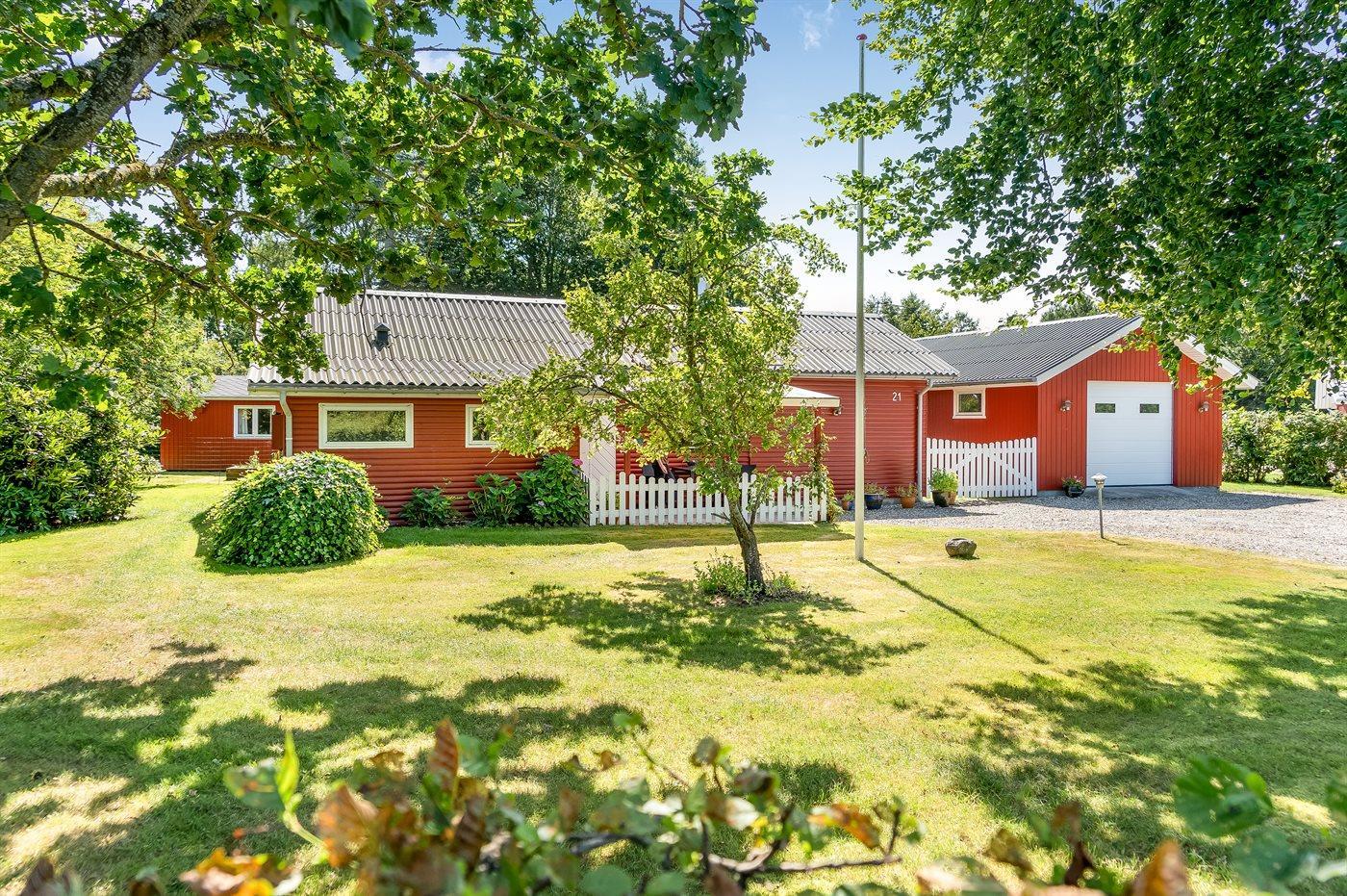 Ferieboligen er beliggende på en 1230 m² stor havegrund. Grunden er indhegnet. Der er 1300 m til havet. Der er 500 m til fjorden. Nærmeste forretning er beliggende i en afstand af 300 m. Der er en golfbane i en afstand af 3100 m. Til ferieboligen hører åbent terrasseareal. Desuden er der overdækket terrasse. Trampolin. Grill til rådighed. Parkering ved ferieboligen.