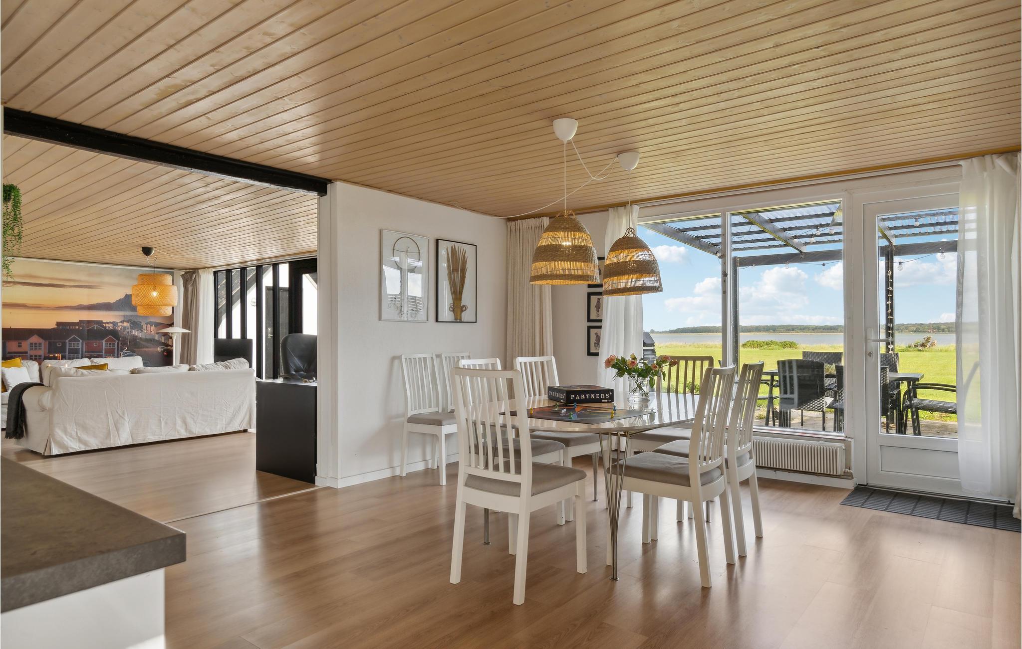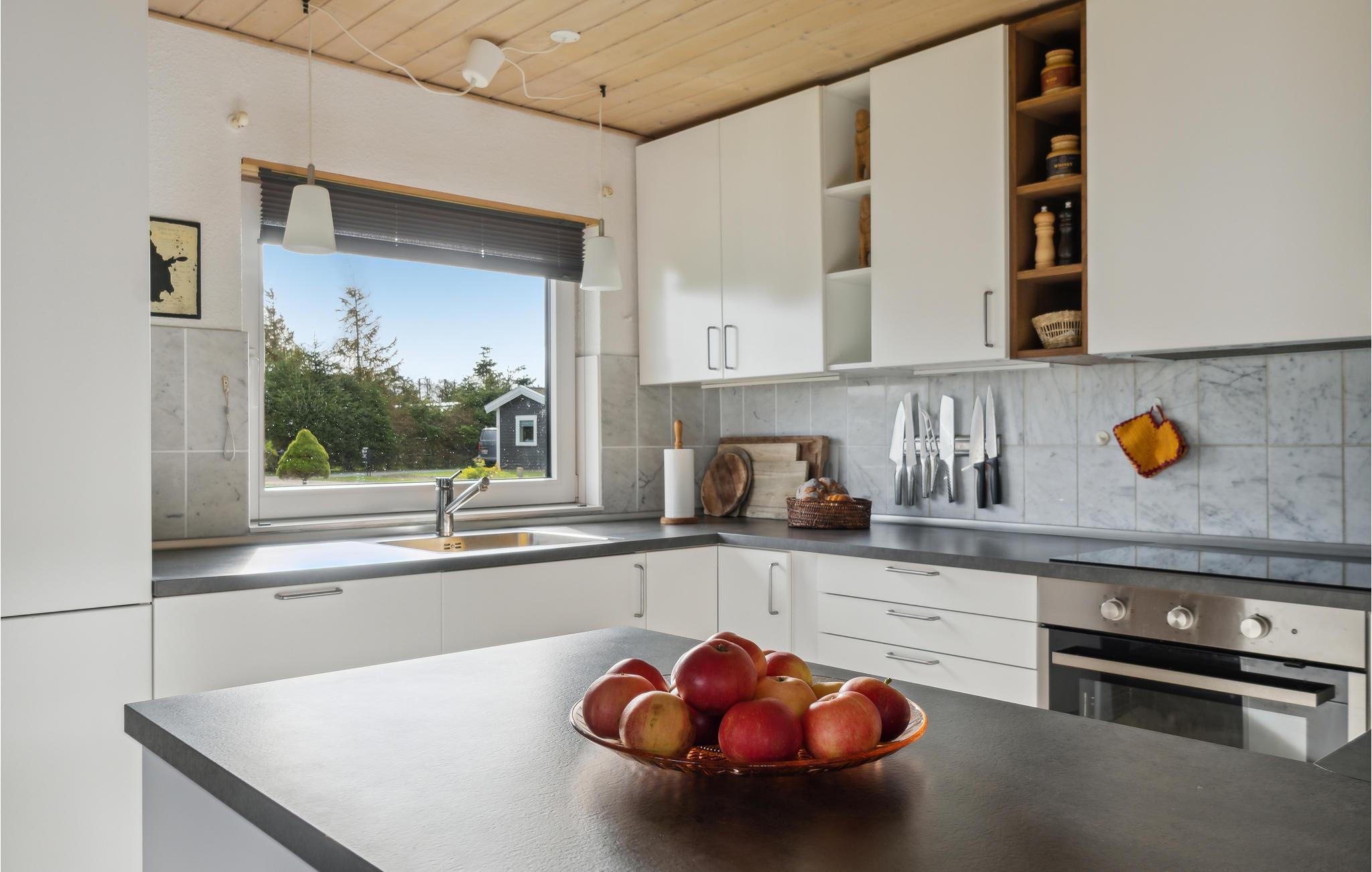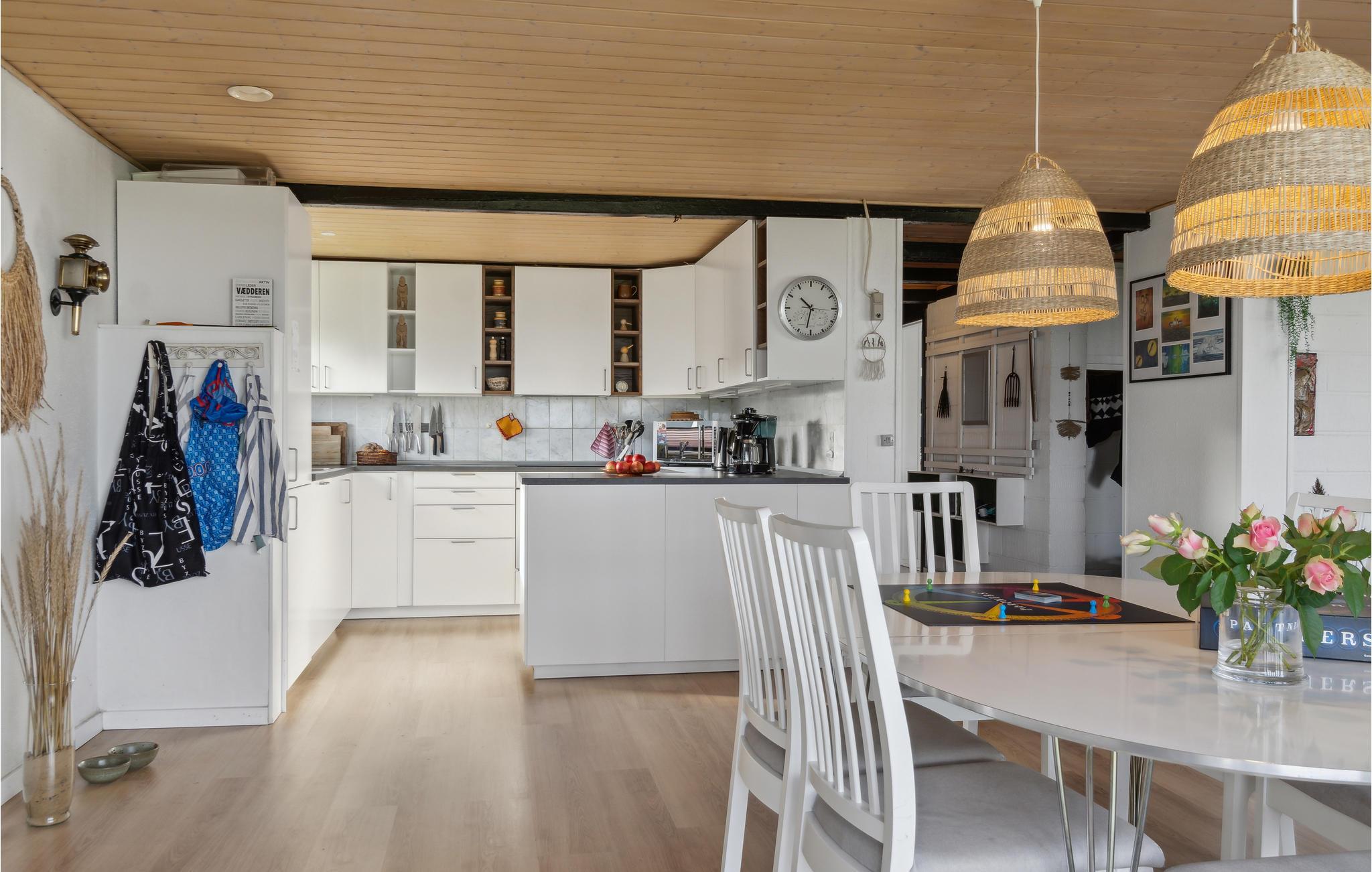 Glæd jer til en skøn ferie i dette dejlige feriehus med en fantastisk beliggenhed i Skellet. Sammen med jeres familie kan I gøre det lyse hus med den hyggelige indretning til jeres andet hjem og slappe af. Brug stuen som et centralt mødested for familien, hvor I kan samles for at se tv i sofaerne, spille kort eller bare nyde udsigten. Hold også madlavningsaftener, hvor amatørkokkene kan trylle lækre retter frem. I sommermånederne tilbyder den store, delvist overdækkede terrasse en dejlig atmosfære. Husets udendørs areal indbyder uden tvivl til at grille sammen eller spille spil på plænen. Når mørket falder på, kan I samles ved vandet omkring bålpladsen og riste skumfiduser og fortælle hinanden uhyggelige historier.