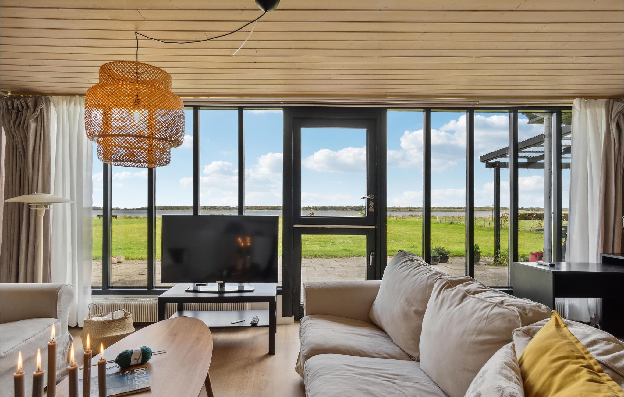 Hyggeligt feriehus i første række til Limfjorden med panoramaudsigt og stor terrasse tæt på vandet.