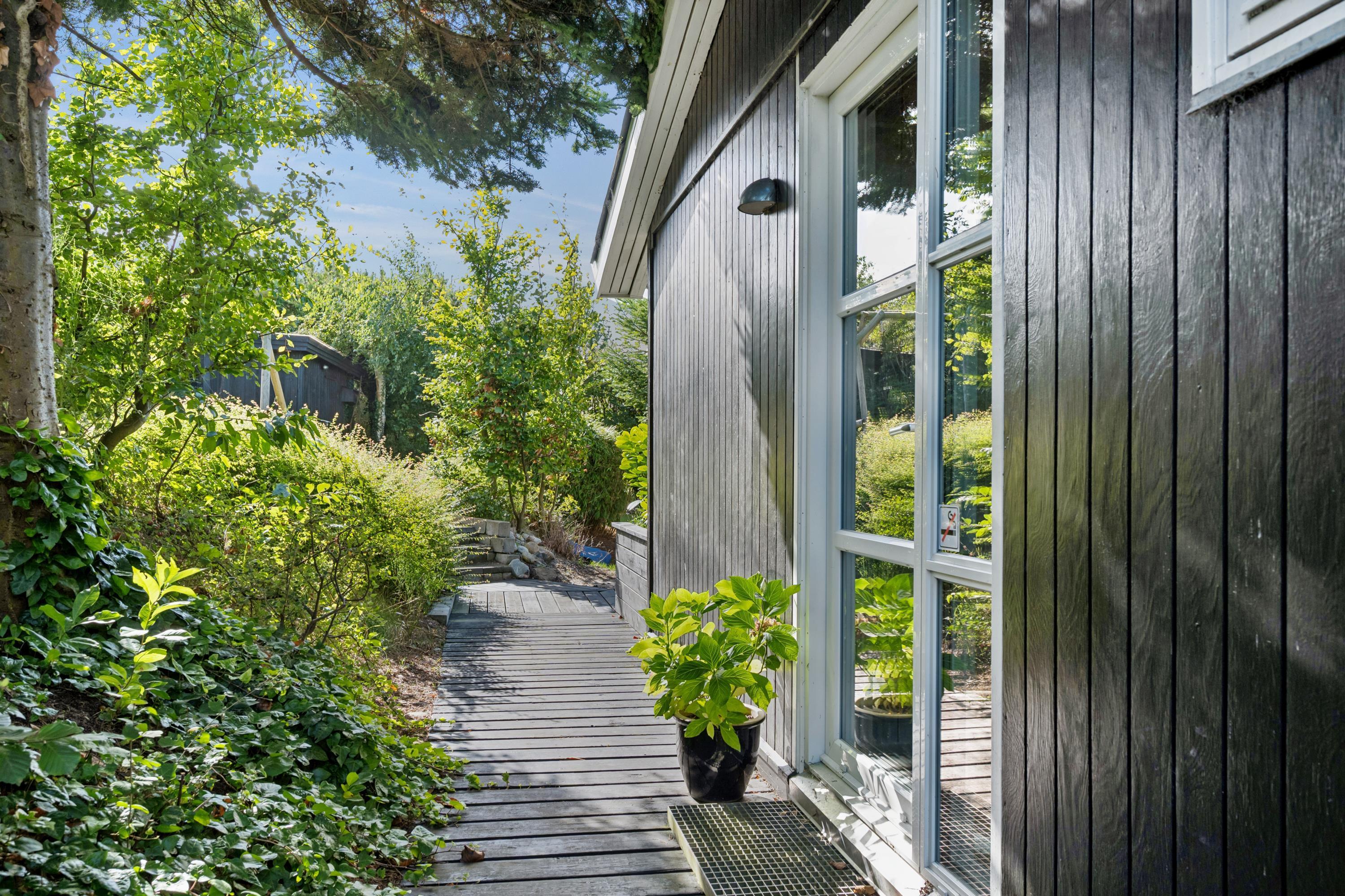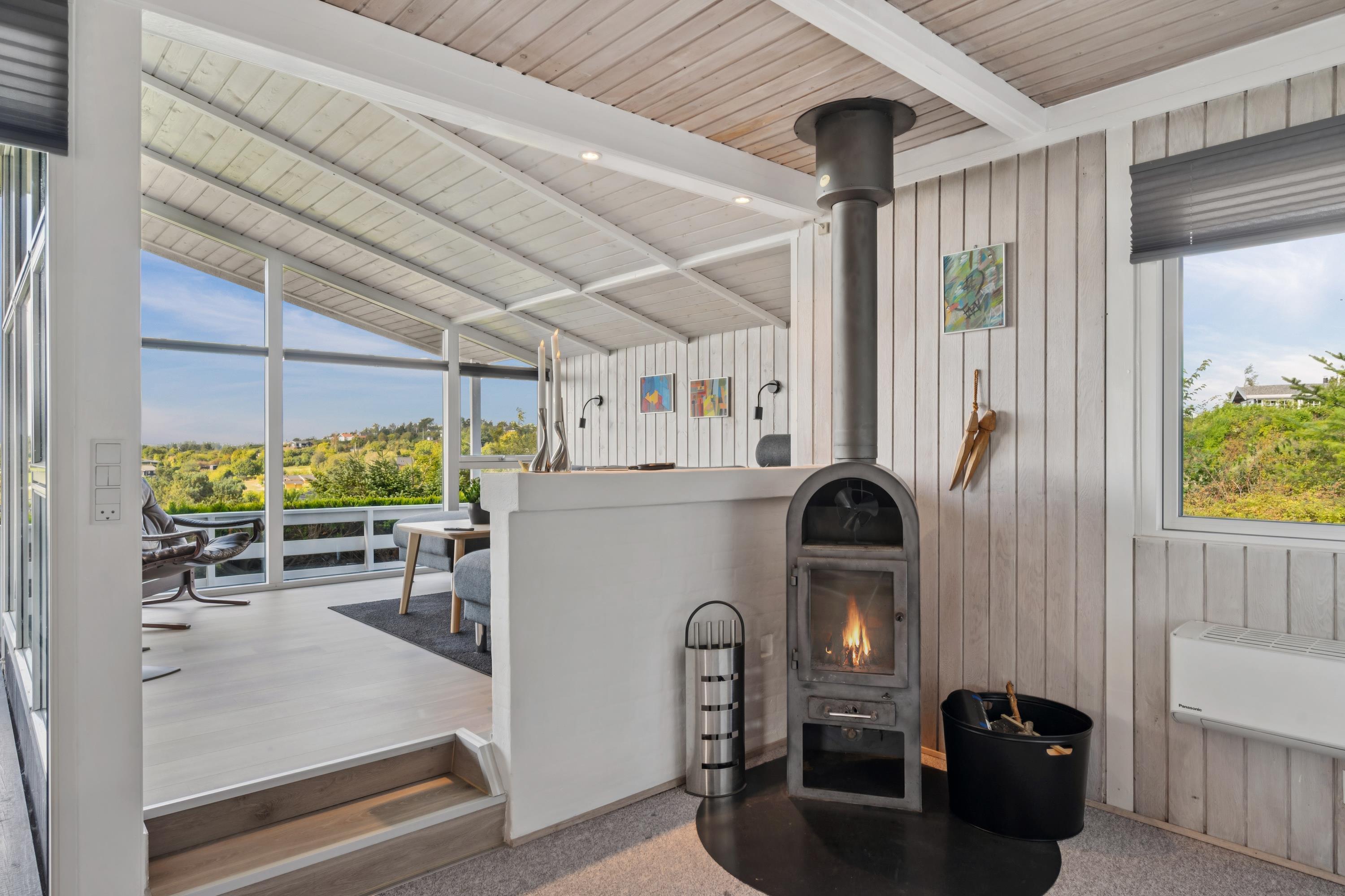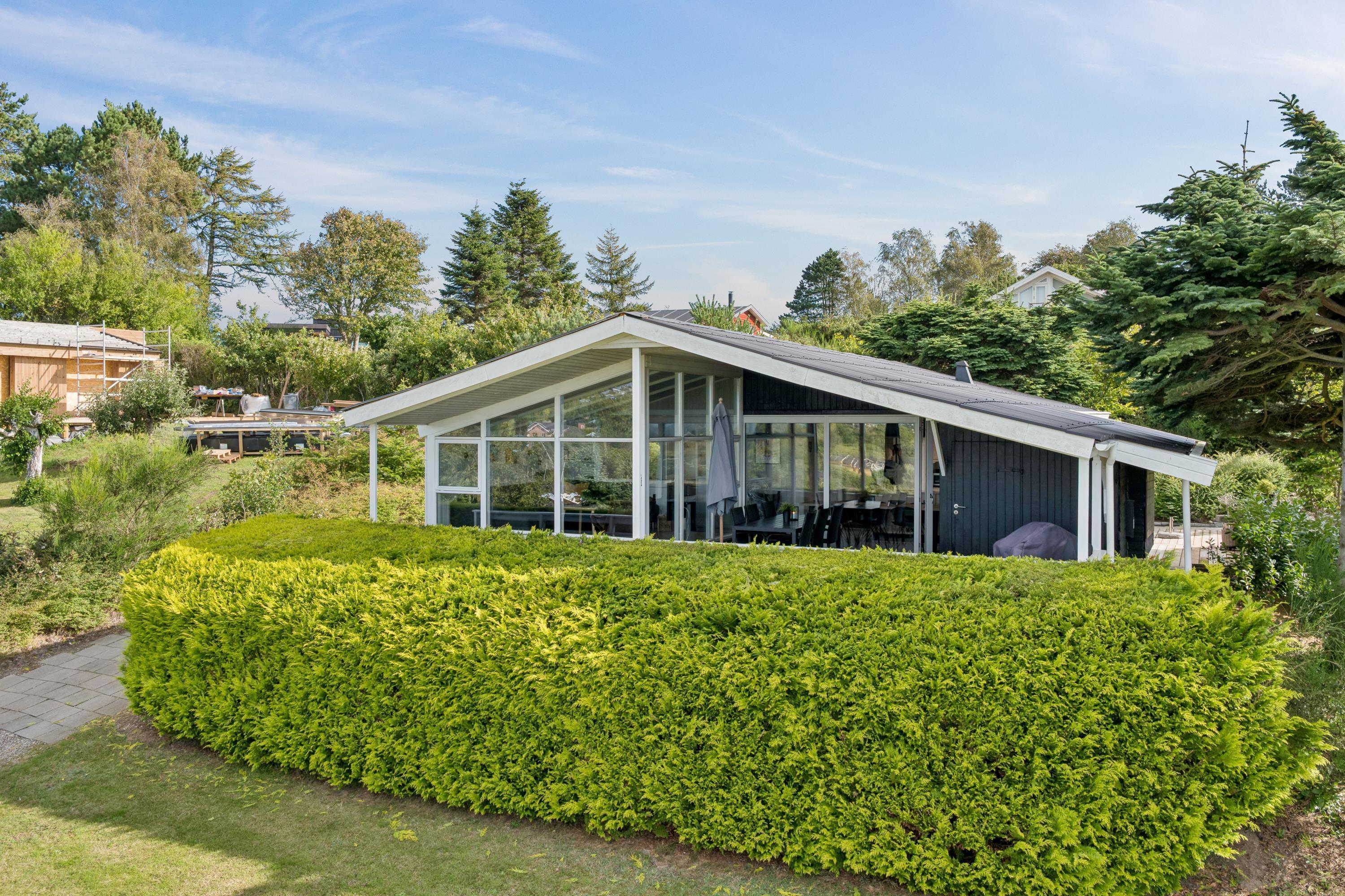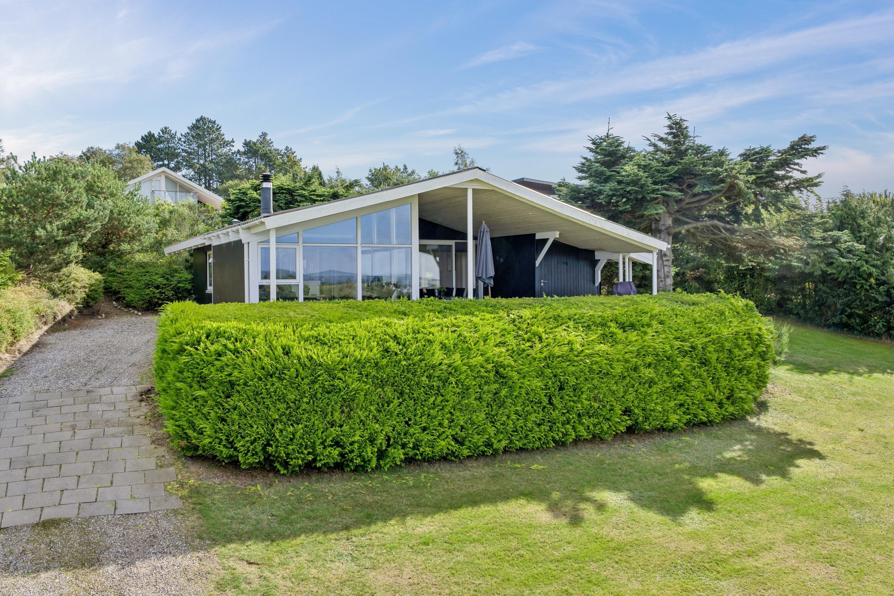 Velkommen til dette hyggelige og velholdte feriehus. Her finder man en velmøbleret opholdsstue hvorfra man har den smukkeste udsigt til vandet. Dejligt og veludstyret køkken med b.la opvaskemaskine og udgang til en skøn terrasse med havemøbler. I forbindelse med køkkenet ligger den hyggelige spisestue med brændeovn og varmepumpe og herfra er der også udgang til en terrasse som er overdækket og med havemøbler. Pænt badeværelse med bruseniche og vaskemaskine. Husets sovepladser finder man i tre gode værelser. Til de små feriegæster er der høj stol og barneseng. Huset er højtbeliggende på en velplejet grund med stor græsplæne. Der findes flere gode lækroge og terrasser med havemøbler og de små feriegæster er der også tænkt på med gynger, sandkasse og rutschebane. Er man flere familier afsted på ferie , som ønsker at være i nærheden af hinanden, så udlejer vi yderlige 5 huse på samme vej.