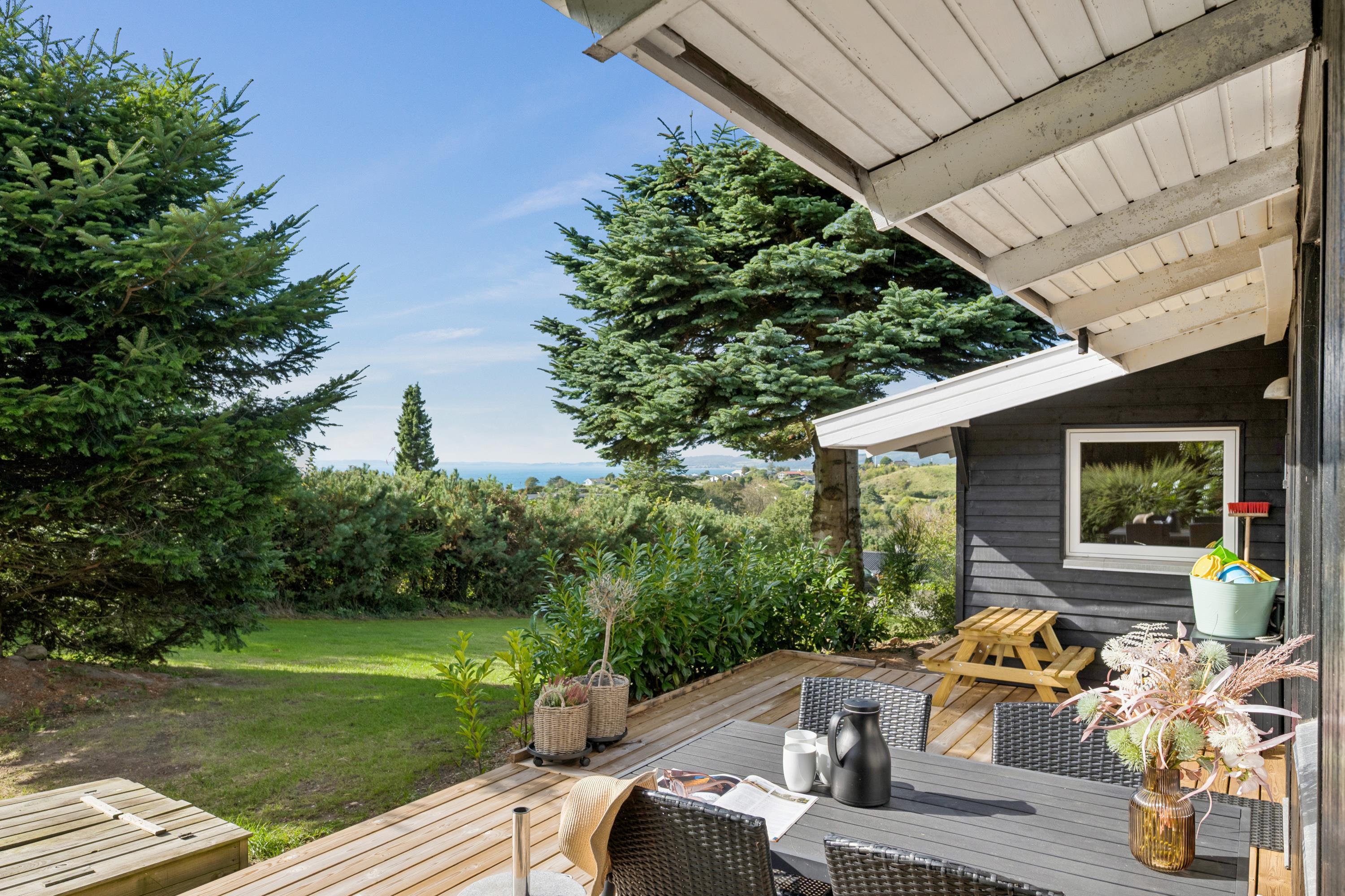 Hyggeligt feriehus med smuk vandudsigt, terrasse og børnevenlige faciliteter nær Ebeltoft og Nationalpark Mols Bjerge.