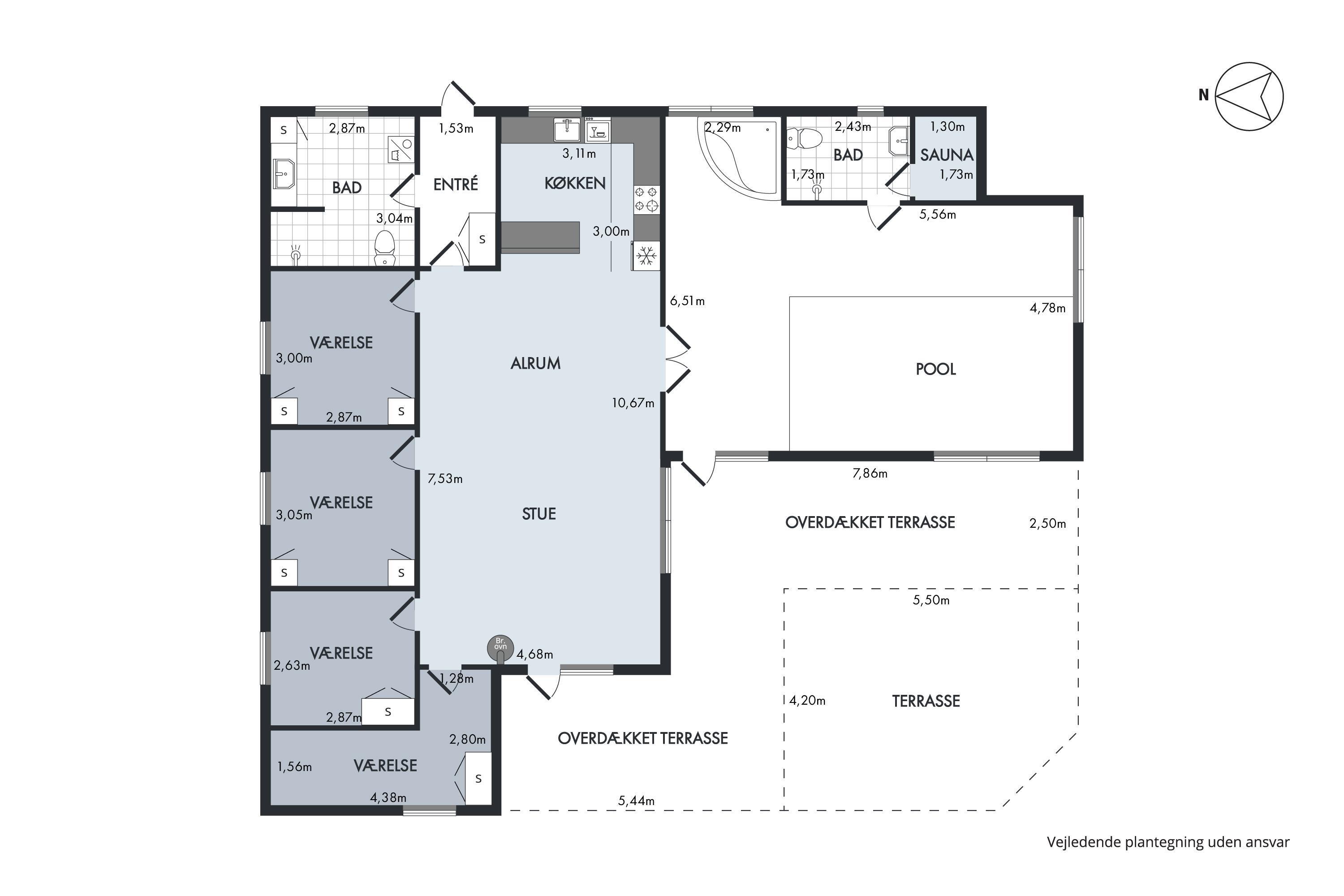 Dejligt sommerhus med swimmingpool, spabad og sauna. Beliggende i Egsmark – centralt for stort set alt. Her er gåafstand til strand og skov, og hyggelige Ebeltoft ligger kun 5 minutters kørsel fra huset. Husets hjerte er det 15 kvm. store poolrum med spa og sauna. Huset er indrettet med et åbent køkken i forbindelse med den kombinerede opholds- og spisestue med brændeovn. Her findes TV med danske kanaler. Internetadgang. Husets 10 sovepladser fordeler sig på 4 gode soverum - 2 med virkelig gode dobbeltsenge, 1 værelse med køjeseng og et værelse med to dobbeltsenge anbragt som køjesenge. De to badeværelser har begge gulvvarme. Udenfor er der en dejlig, lukket terrasse med fast grill. Huset er udstyret med Genvex-anlæg, der er med til at give et godt indeklima. Endvidere er der installeret 2 varmepumper.