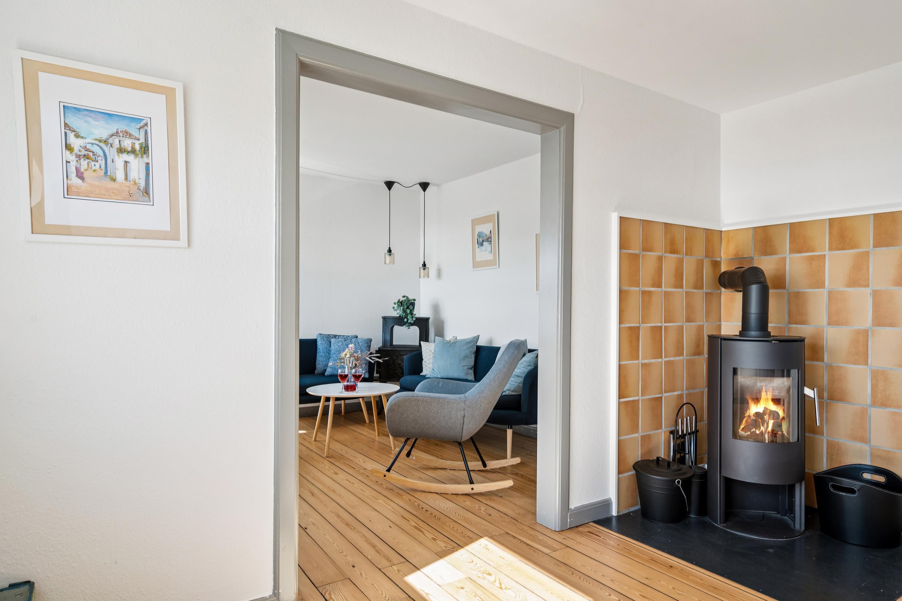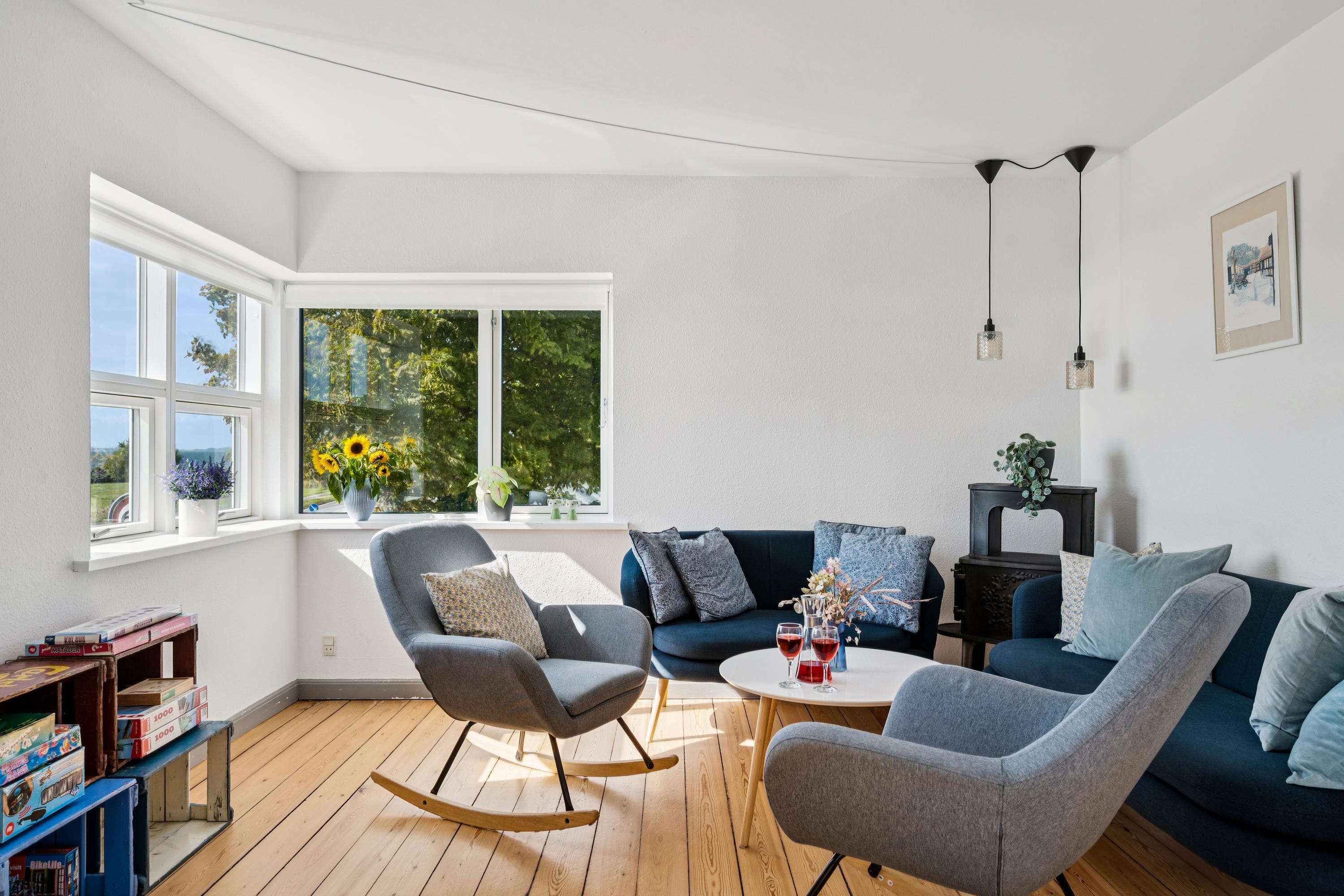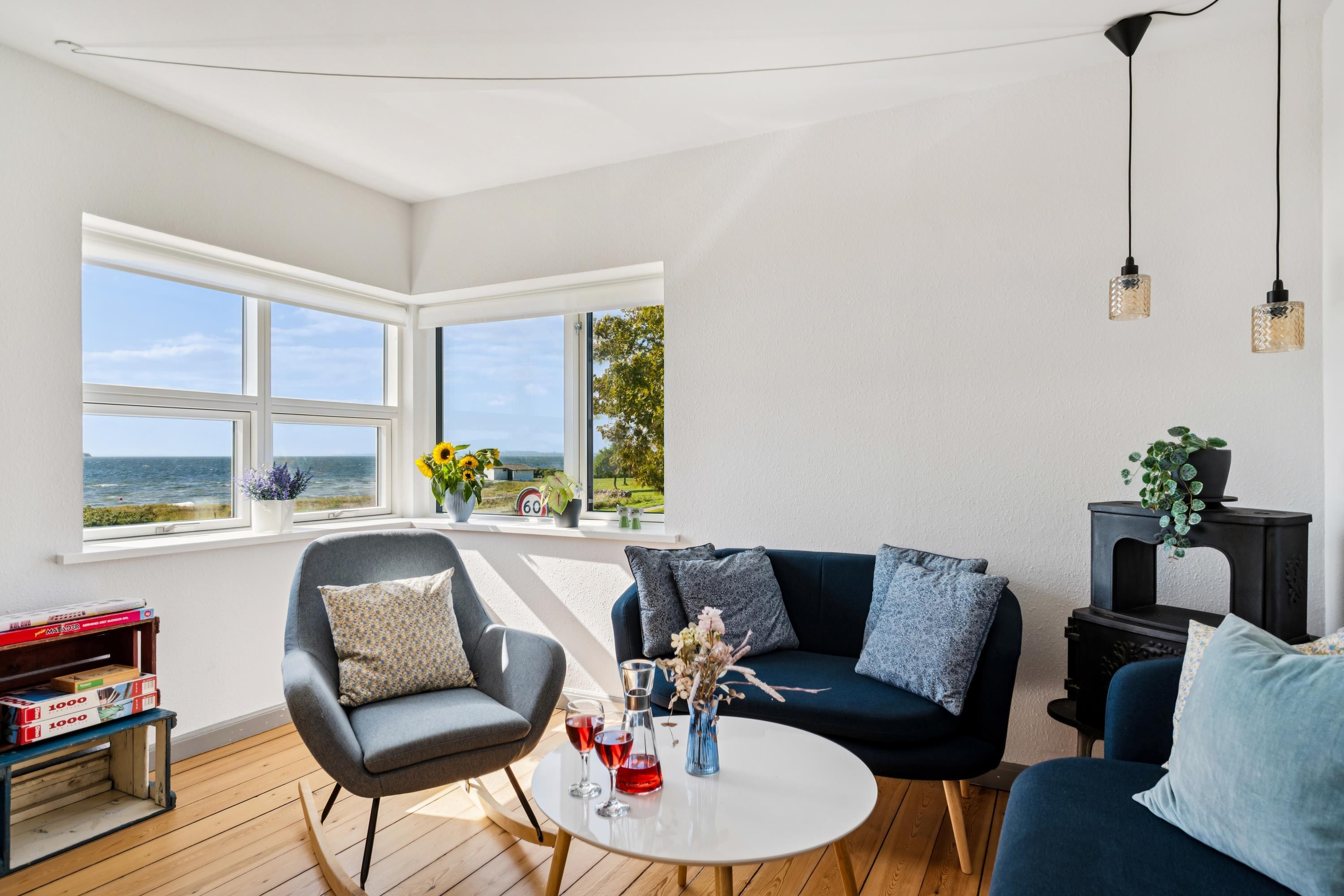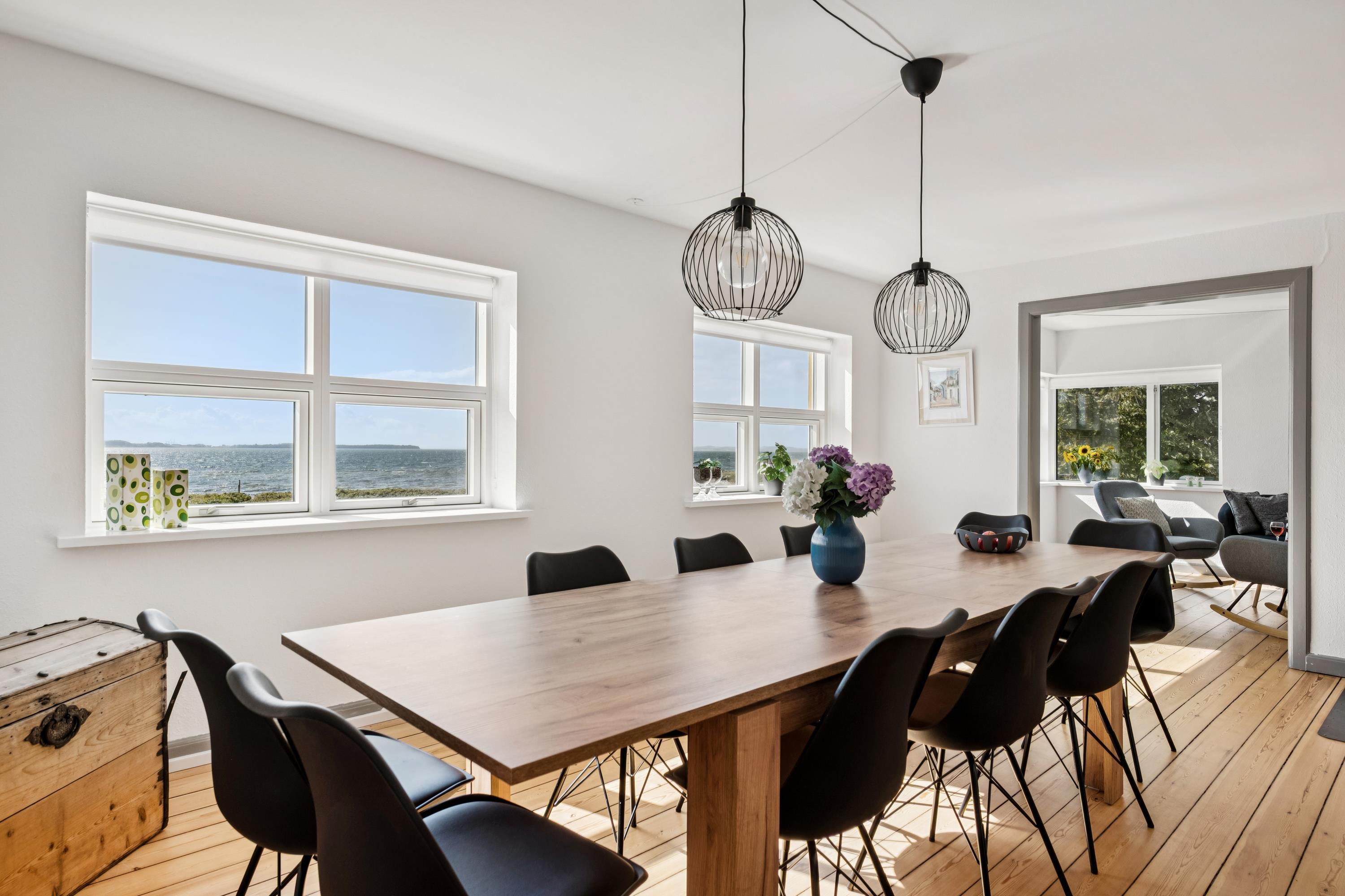 Med den smukkeste panoramaudsigt over Ebeltoft Vig og Mols Bjerge, finder man dette rummelige og nyrenoverede feriehus i to plan. I stueplan finder man tre gode og lyse soveværelser, heraf to med dobbeltsenge, samt et værelse med to enkeltsenge. Her er desuden et hyggeligt legeværelse til de små feriegæster. Derudover finder man et godt bryggers med vaskemaskine og tørretumbler samt husets badeværelse med bruseniche. Opgang til 1. sal hvor man finder den skønne spisestue samt hyggelige opholdsstue, møbleret med gode møbler. Her er både varmepumpe og brændeovn. TV foregår via Chromecast. Dejligt køkken med b.la. opvaskemaskine samt endnu et soveværelse med dobbeltseng. Huset er beliggende på en stor grund med en god græsplæne med plads til leg og udendørs hygge.