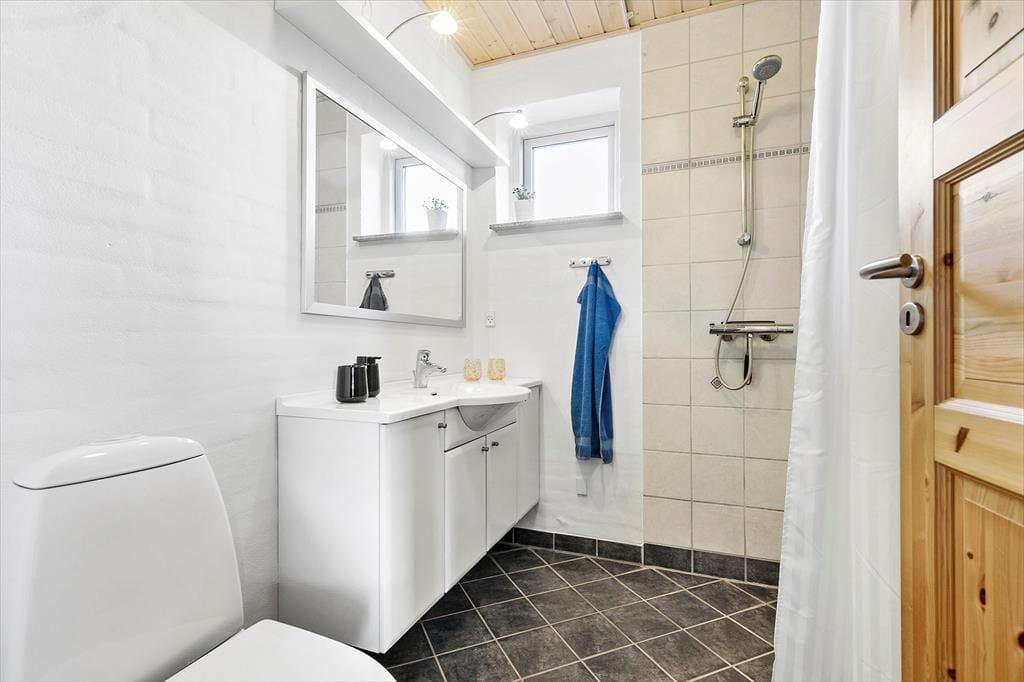 Udenfor kan du nyde livet på den store terrasse med havemøbler, bålsted og grill, der skaber perfekte rammer for hyggelige sommeraftener. Huset ligger højt og uforstyrret med adgang via en trappe, og kun 350 meter fra huset finder du en dejlig sandstrand og kyst, hvor du kan tage på opdagelse eller bare dyppe tæerne i vandet. Samtidig er der kort afstand til Ebeltofts charmerende bymidte med spændende kulturelle tilbud og gode restauranter.