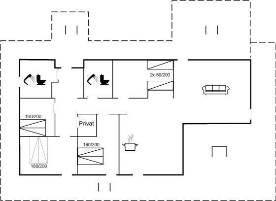 Der er i alt 4 soveværelser. Sovepladserne fordeler sig på: 6 sovepladser i dobbeltsenge. 2 sovepladser i enkeltsenge.