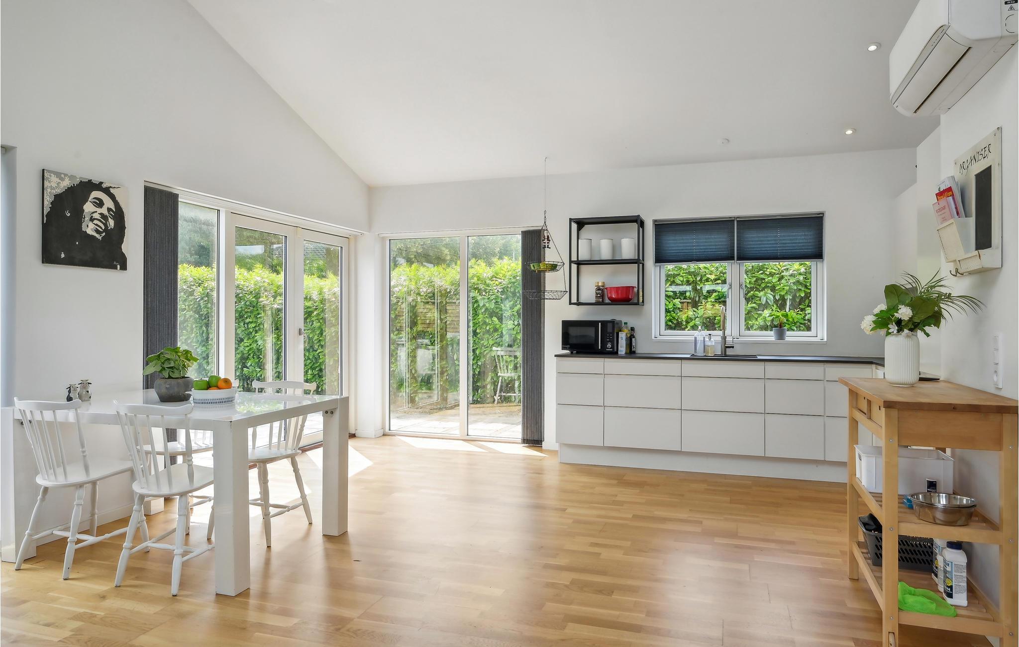 Forkæl jer selv med en velgørende pause i dette moderne lyse feriehus i Ejby, ikke langt fra smuk natur. Indenfor finder I alt, hvad I har brug for til en ubekymret ferie. Den behagelige atmosfære i stuen, som forbinder alle områder i huset, inviterer til hyggelige dage med spil, film, god mad og meget mere. Træd ud på terrassen, der snor sig om huset, og nyd sommerdagene eller ferielæsning og drinks i havepavillonen med sidevægge.