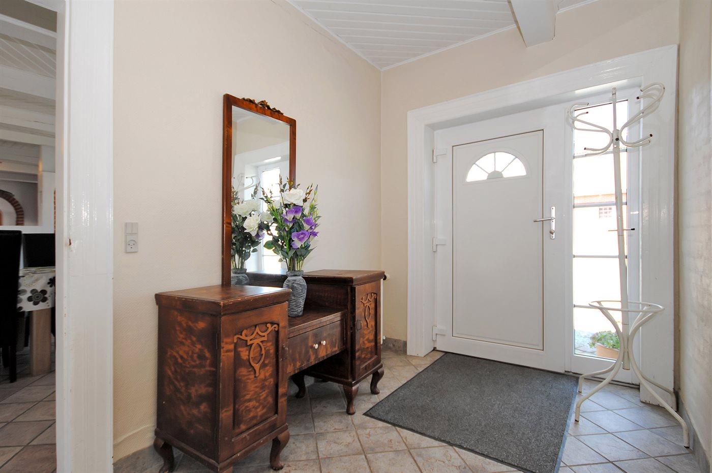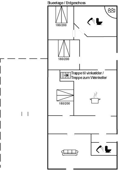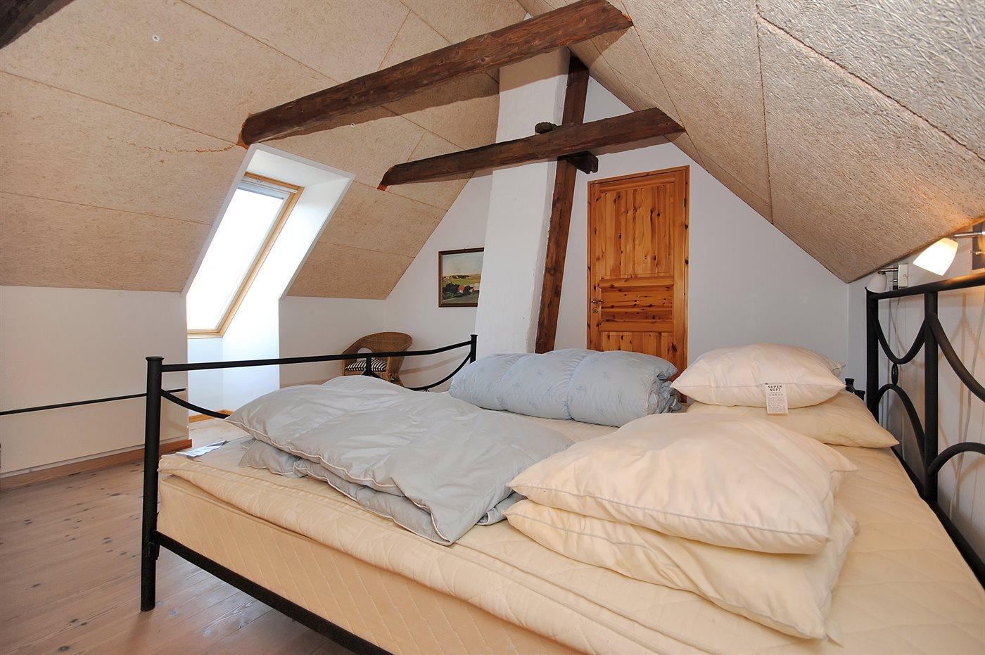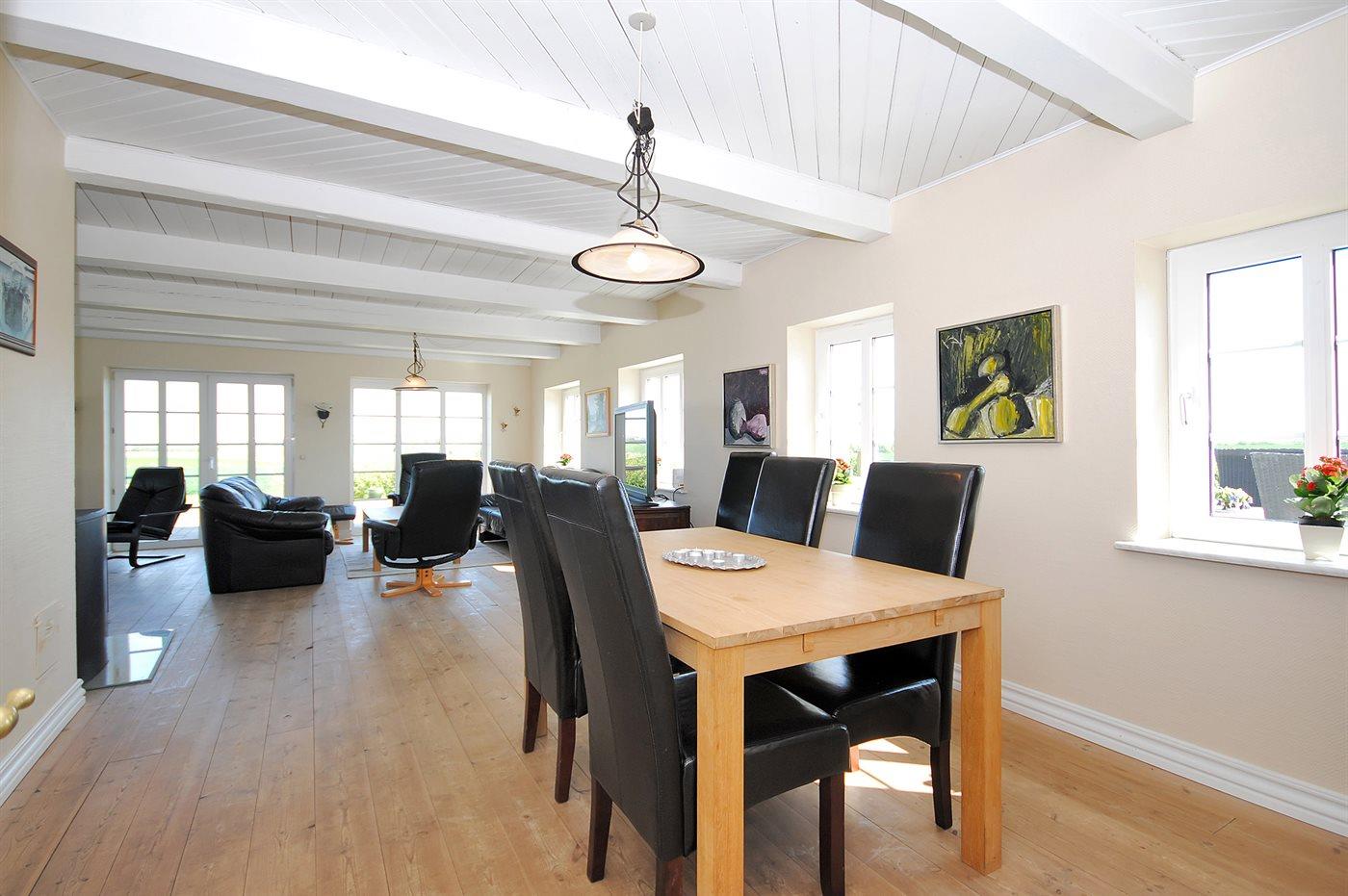 I den smagfuldt møblerede opholdsstue med store panoramavinduer har I mulighed for at nyde udsigten over fjorden. Her findes stereoanlæg med CD-afspiller og TV med parabol (digital). Husets sovepladser fordeler sig på 6 soveværelser med dobbeltsenge, 3 i stueetagen og 3 på 1. sal.