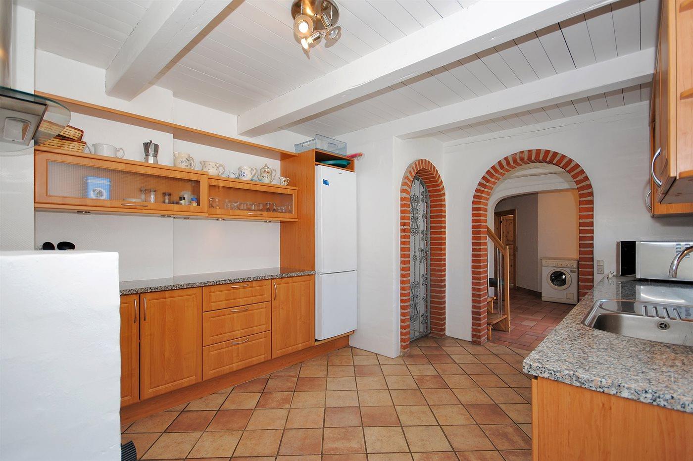 Trægulv i stue og soverum, ellers opvarmede klinkegulve. Stort badeværelse med bruseniche og 2-pers. spa. Ekstra badeværelse med bruseniche. Særdeles veludstyret køkken med fryser, opvaskemaskine, komfur med keramiske kogeplader og varmluftovn. Grovkøkken med vaskemaskine og tørretumbler.