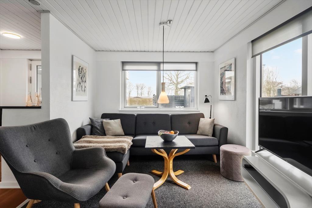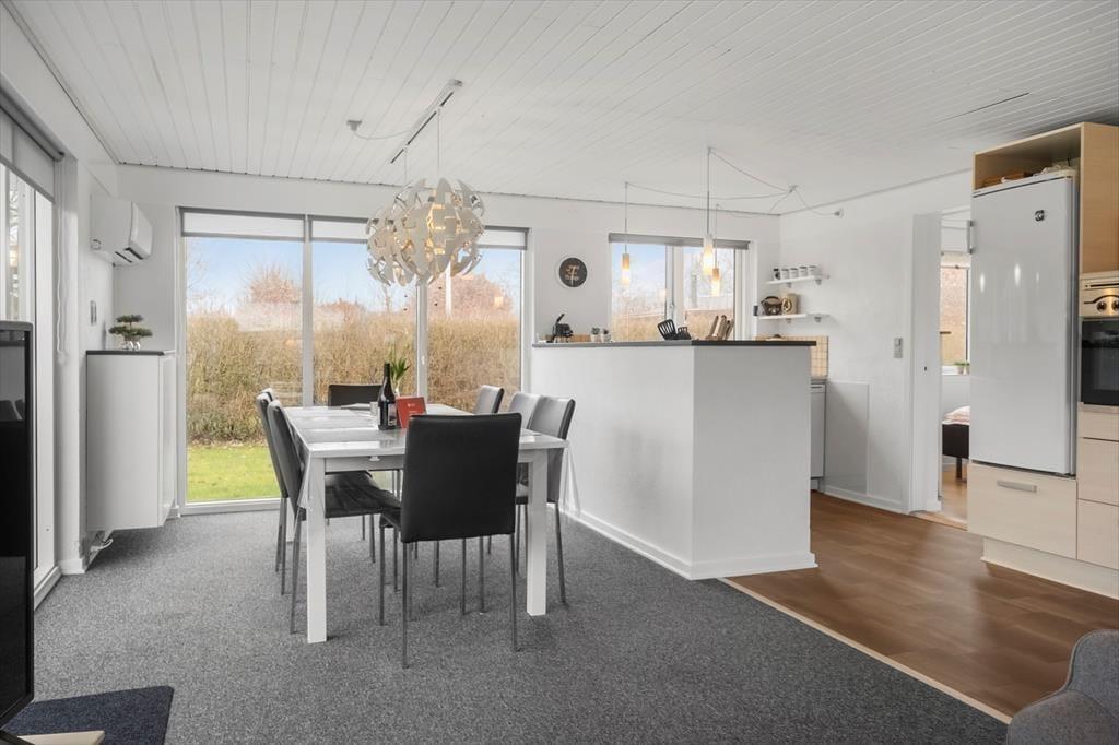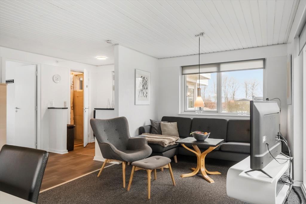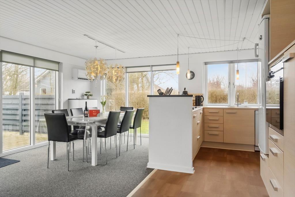 Sommerhuset har en fornuftig planløsning med to soveværelser, et badeværelse og en stue med integreret køkken, og dertil kommer et godt anneks, så det er muligt at være op til otte personer. To hunde er også velkomne inden døre, og mon ikke, at de også hurtigt kan føle sig hjemme i de lyse og enkelt indrettede rum. I stuen står der et fladskærms-tv med Chromecast, hvis aftenen indbyder til tilbagelænet afslapning i sofaen – og hvis du hellere vil løse krydsogtværs, strikke eller spille spil og hyggesnakke med familien ved spisebordet, kan det også sagtens lade sig gøre.