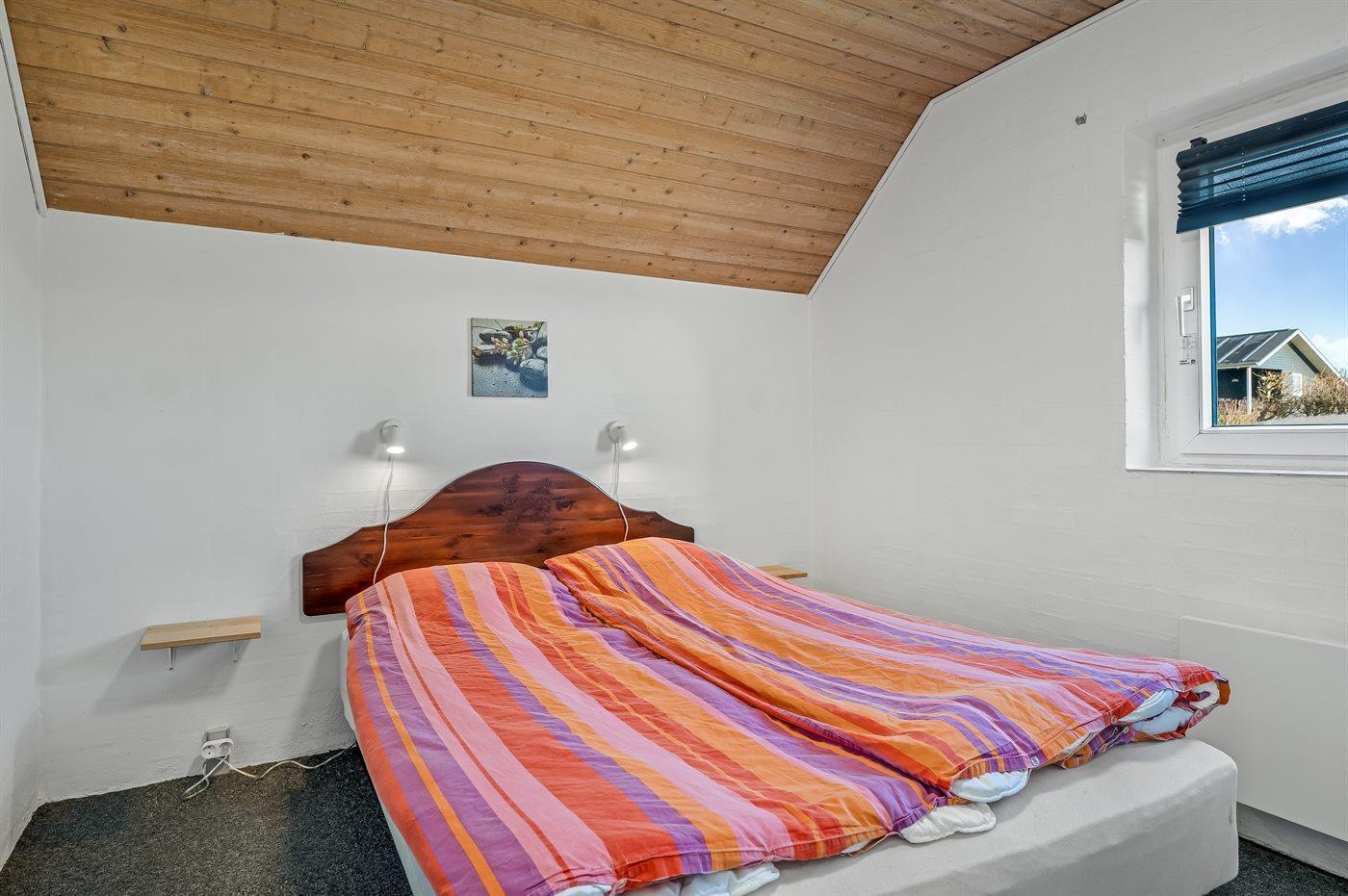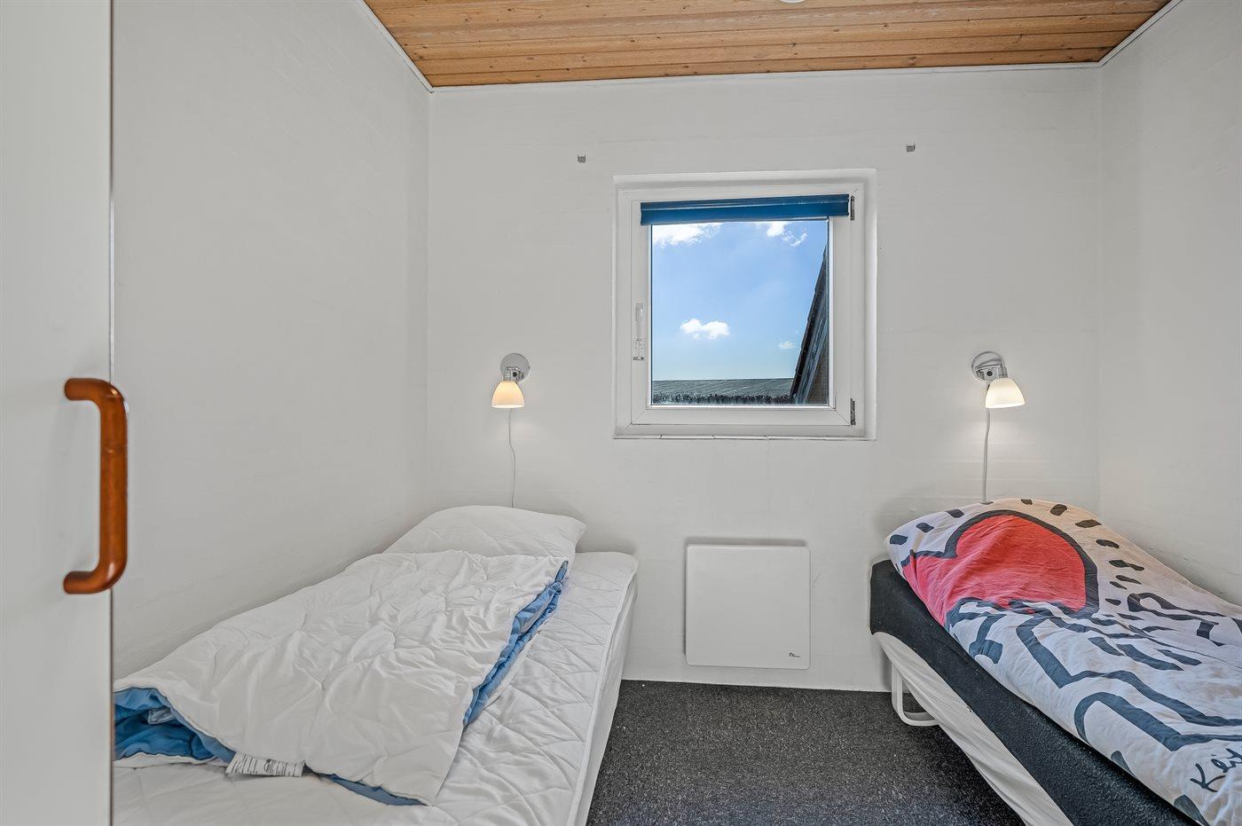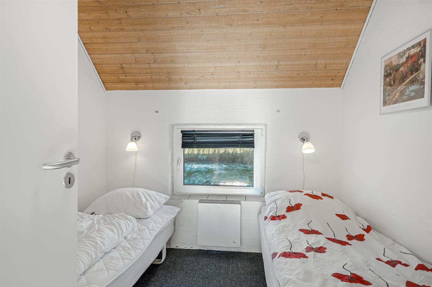 Der er i alt 4 soveværelser. Sovepladserne fordeler sig på: 4 sovepladser i dobbeltsenge. 4 sovepladser i enkeltsenge. 2 sovepladser på madrasser. 2 af disse sovepladser befinder sig på husets hems. Derudover er der 1 stk. barneseng.
