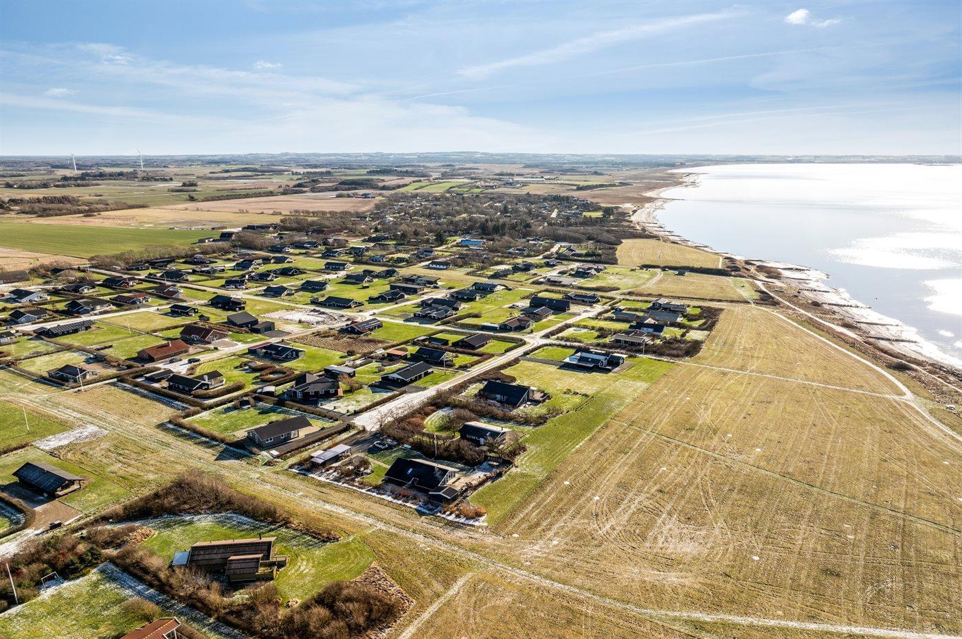 Ferieboligen er beliggende på en 1000 m² stor naturgrund. Der er 300 m til fjorden. Nærmeste forretning er beliggende i en afstand af 2000 m. Til ferieboligen hører åbent terrasseareal. Parkering ved ferieboligen.