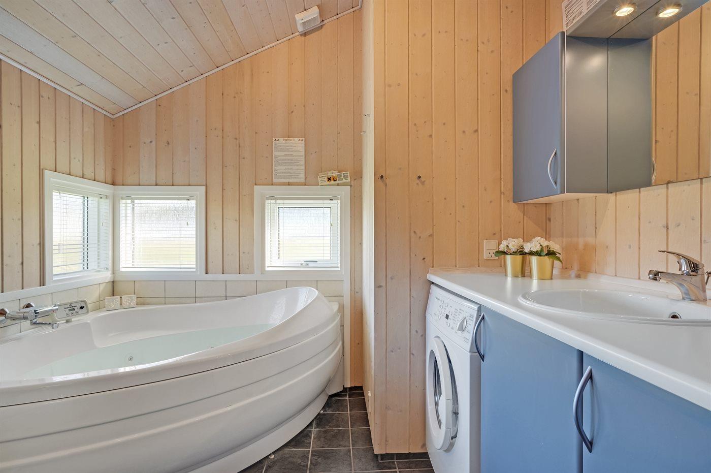 Der er 2 badeværelser med bruseniche og 2 toiletter. Der er gulvvarme på 2 badeværelser. I saunaen er der mulighed for afslapning.