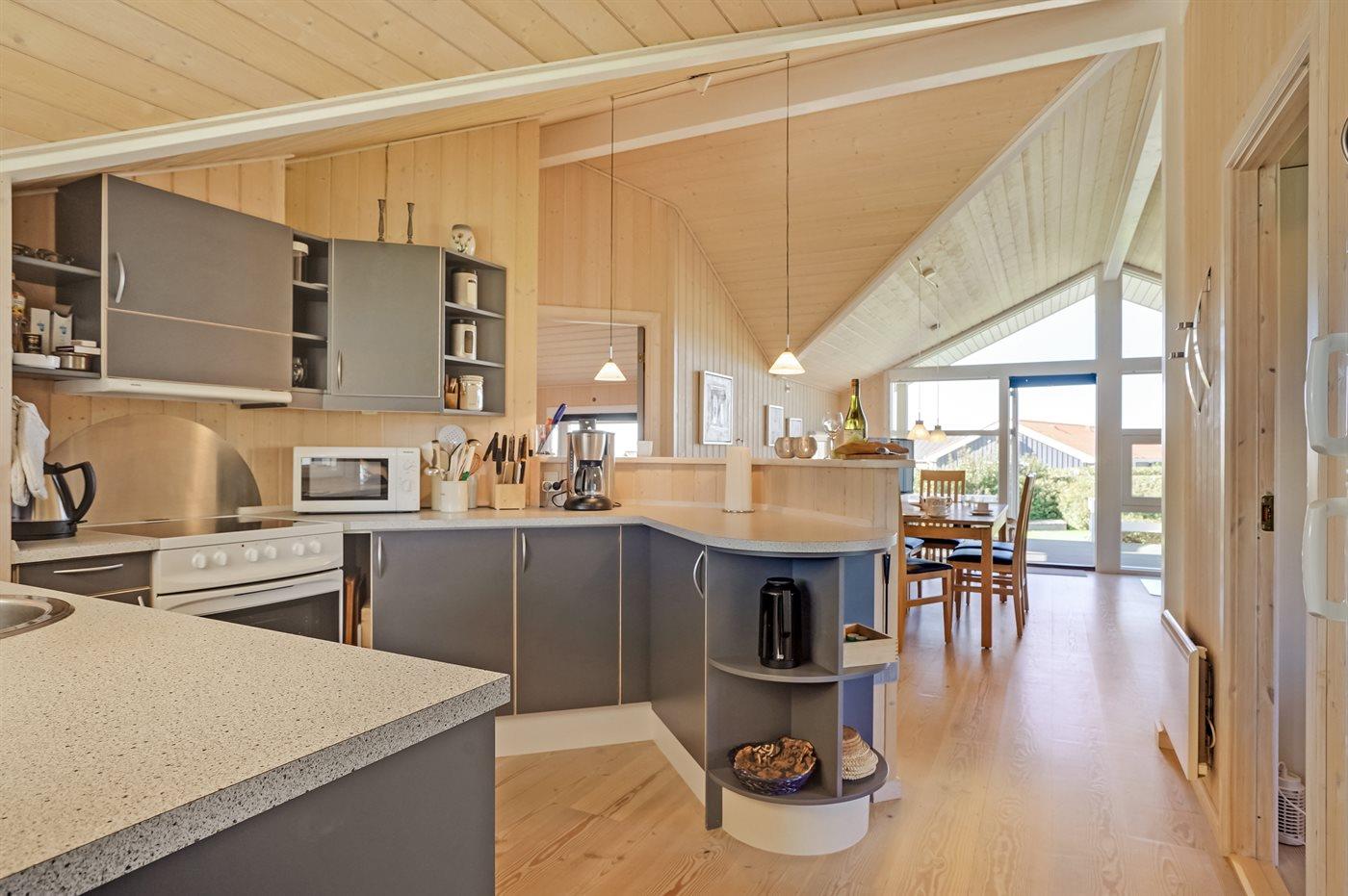 Køkkenet er udstyret med 1 køleskab. Der er 4 keramiske kogeplader, varmluftovn, mikrobølgeovn samt opvaskemaskine.