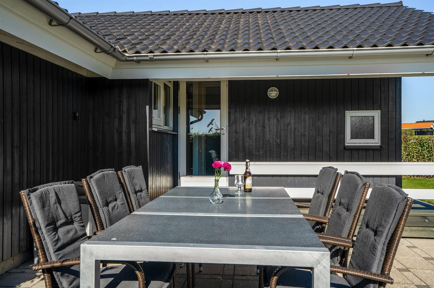 Ferieboligen er beliggende på en 1000 m² stor havegrund. Der er 350 m til fjorden. Nærmeste forretning er beliggende i en afstand af 500 m. Til ferieboligen hører 55 m² terrasseareal. Desuden er der 15 m² overdækket terrasse. Der er redskabsrum. Gynge. Sandkasse. Parkering ved ferieboligen.