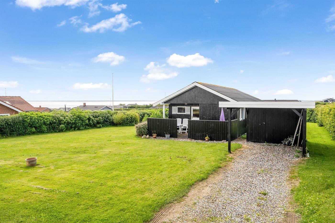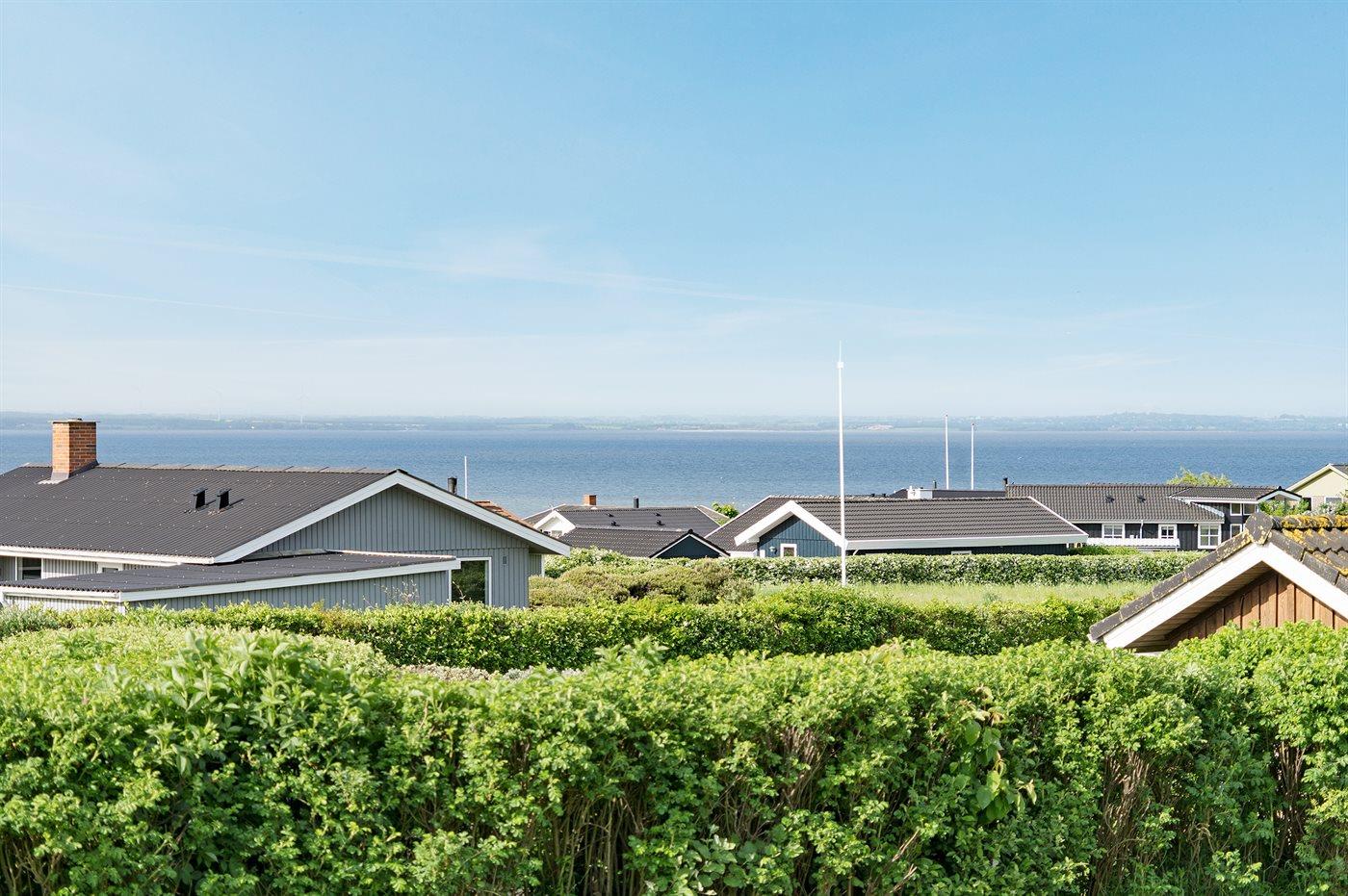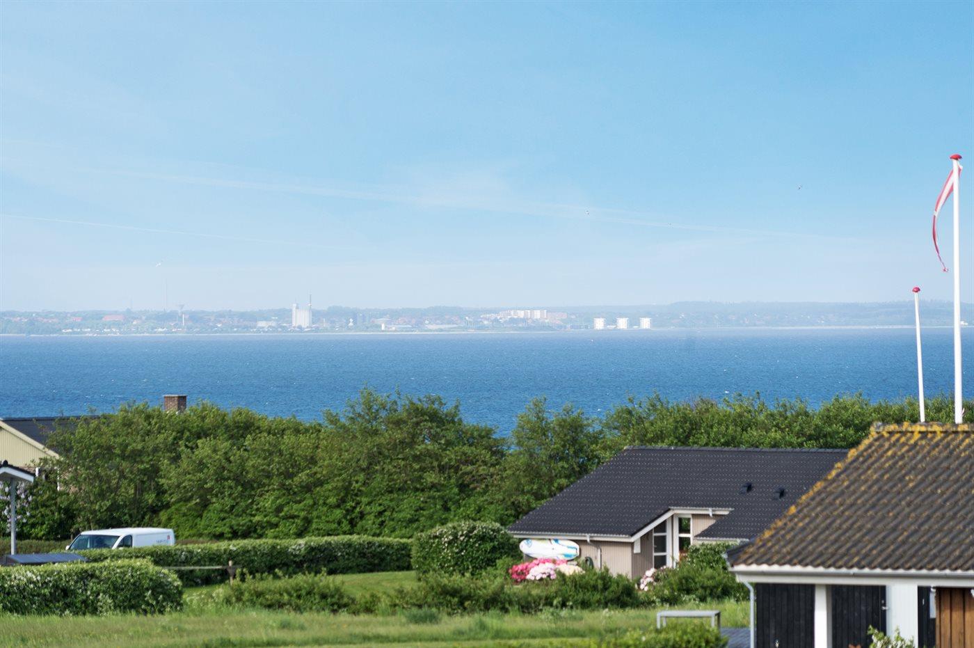 Et sommerhus med en skøn udsigt over Limfjorden. Bemærk, at sovepladserne i sovesofaen befinder sig i opholdsstuen.