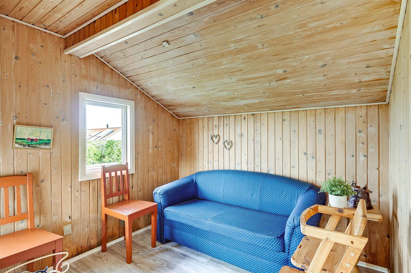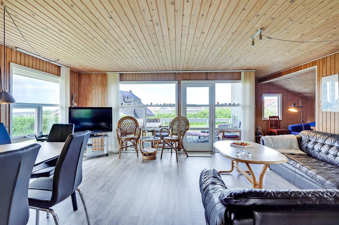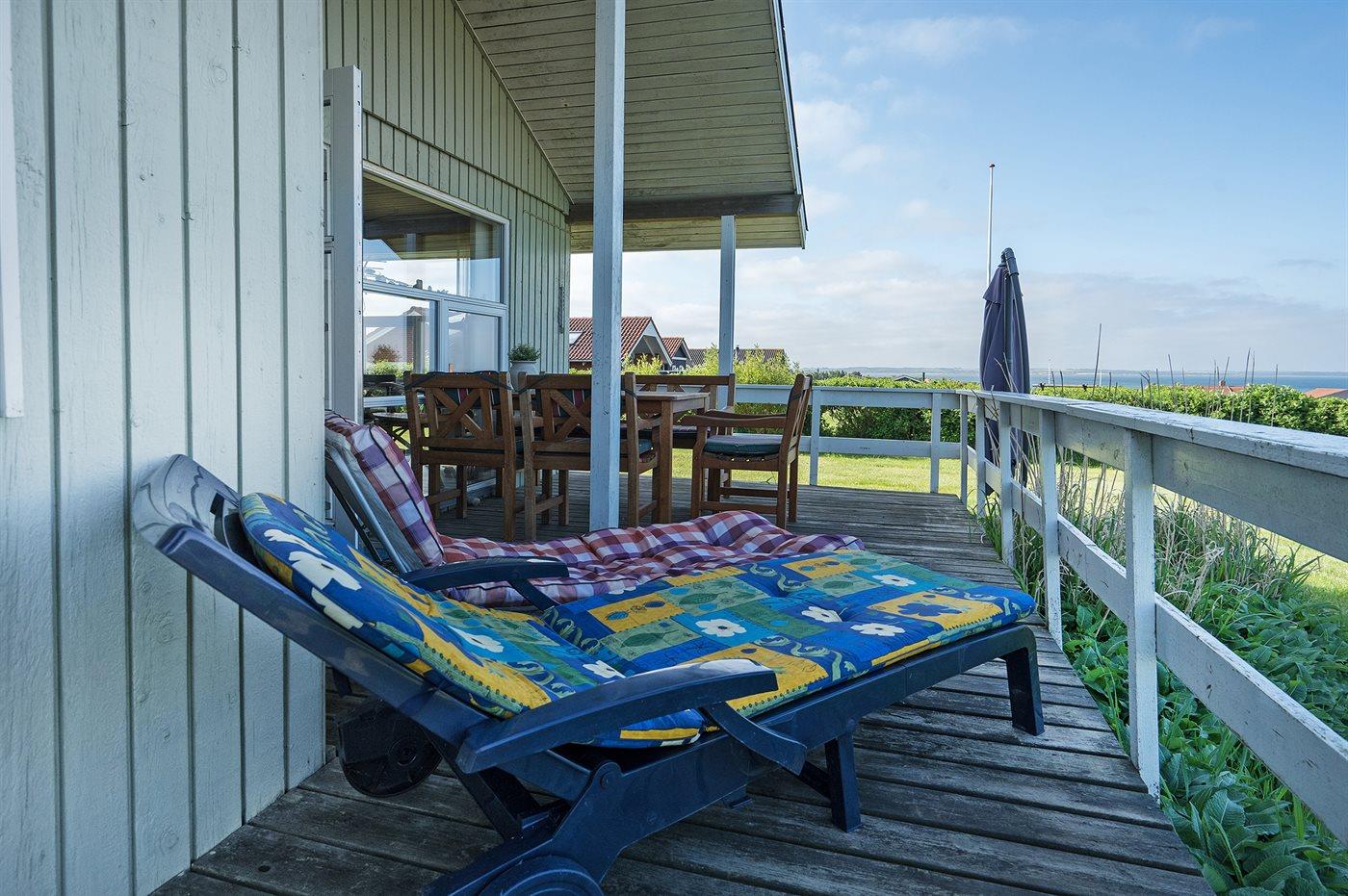 Et sommerhus med en skøn udsigt over Limfjorden. Bemærk, at sovepladserne i sovesofaen befinder sig i opholdsstuen.