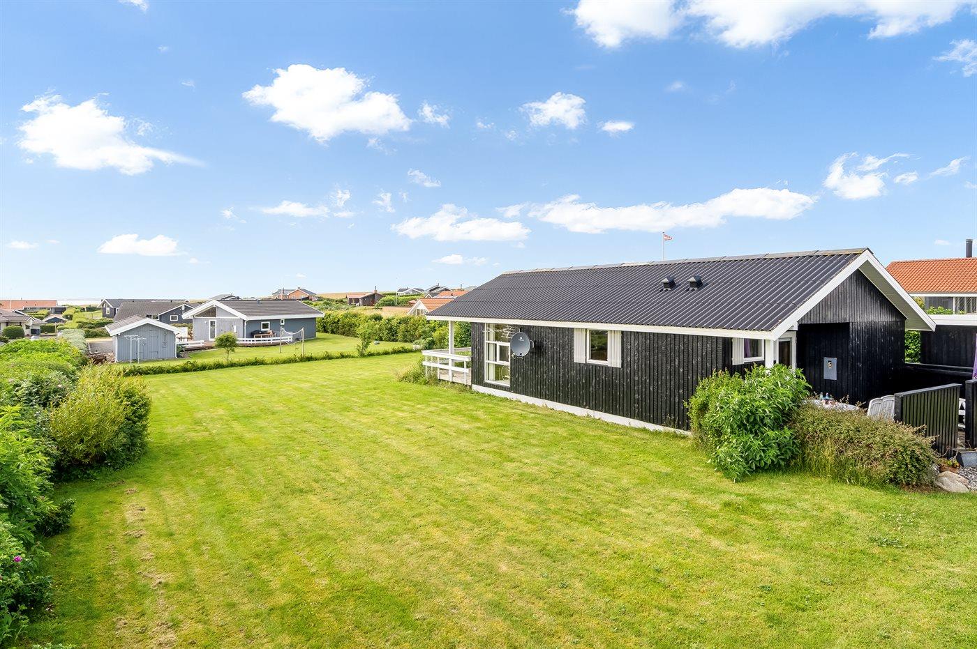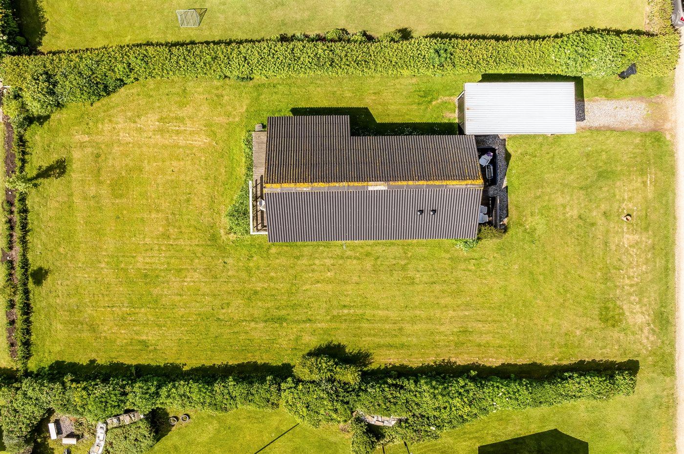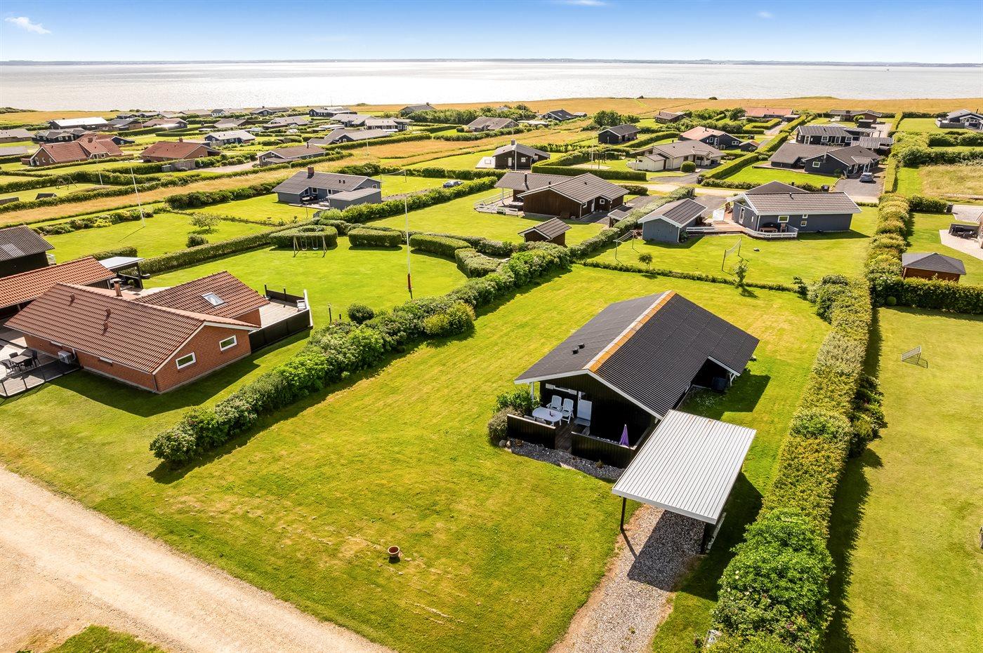 Ferieboligen er beliggende på en 1087 m² stor havegrund. Der er 300 m til fjorden. Nærmeste forretning er beliggende i en afstand af 1000 m. Til ferieboligen hører 30 m² terrasseareal. Desuden er der 10 m² overdækket terrasse. Der er redskabsrum. Parkering ved ferieboligen.