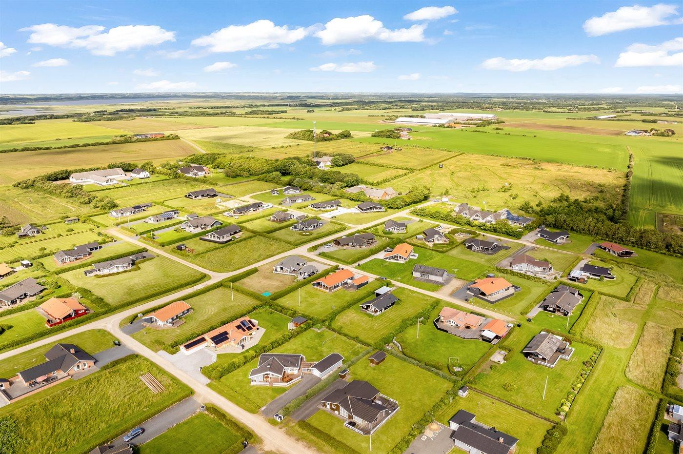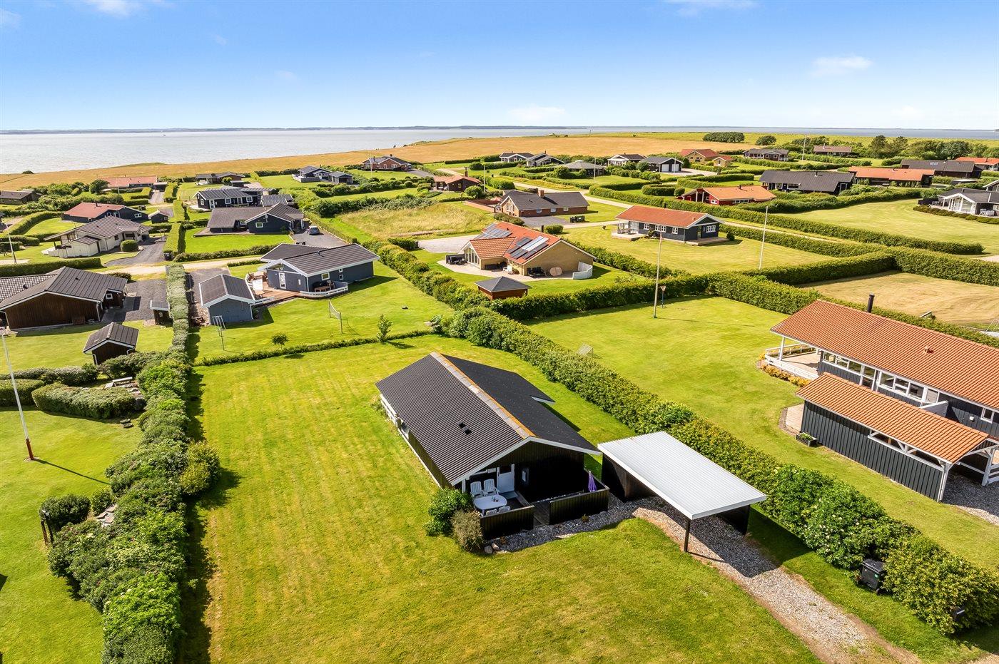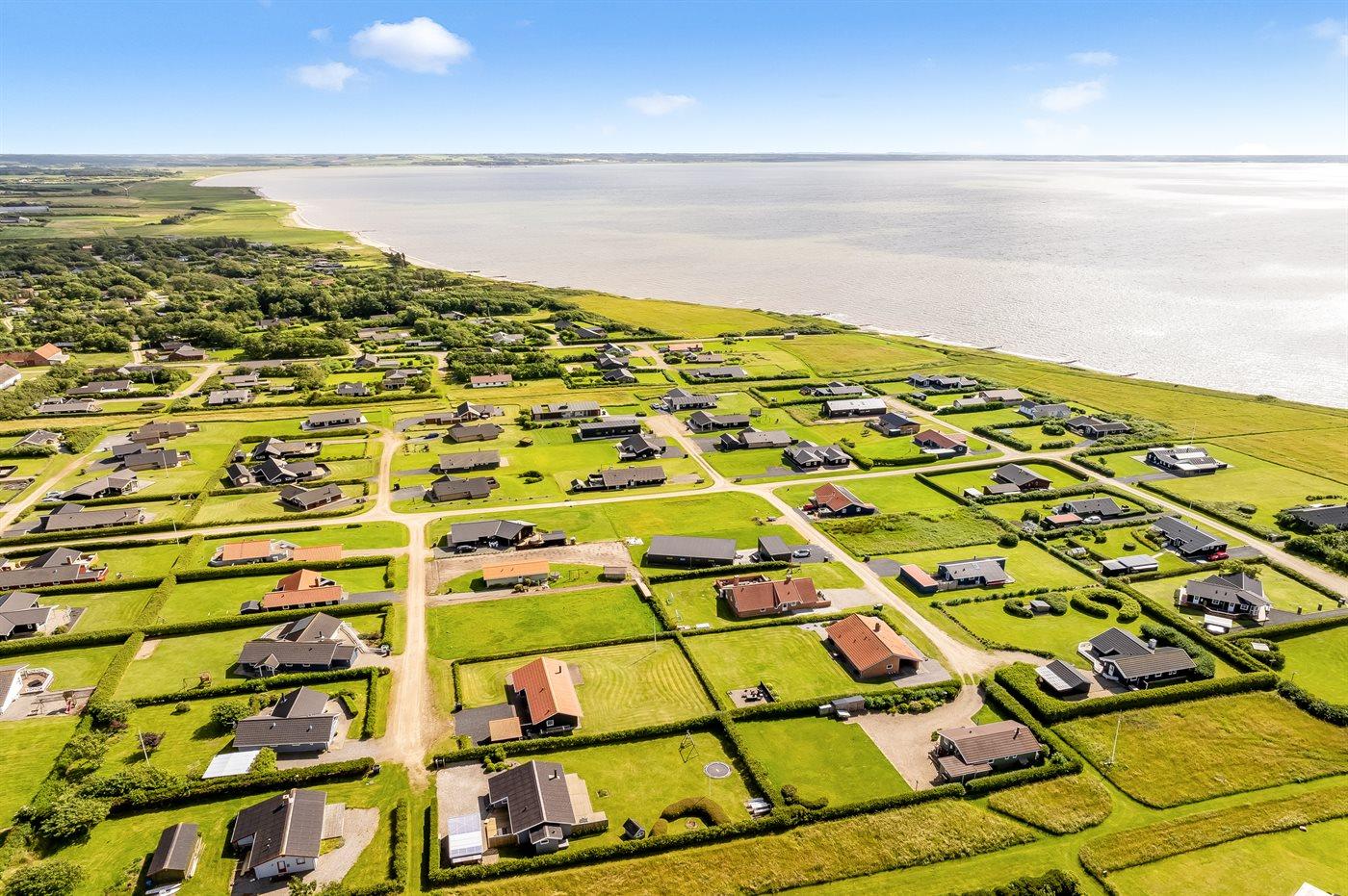 Ferieboligen er beliggende på en 1087 m² stor havegrund. Der er 300 m til fjorden. Nærmeste forretning er beliggende i en afstand af 1000 m. Til ferieboligen hører 30 m² terrasseareal. Desuden er der 10 m² overdækket terrasse. Der er redskabsrum. Parkering ved ferieboligen.