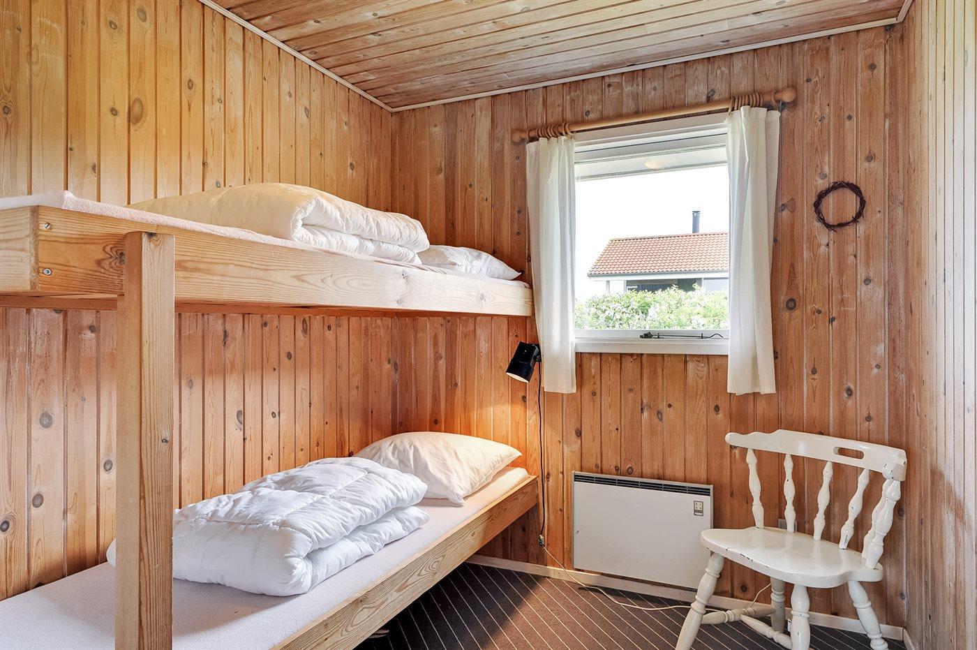Der er i alt 2 soveværelser. Sovepladserne fordeler sig på: 2 sovepladser i dobbeltseng. 2 sovepladser i køjeseng. 2 sovepladser i sovesofa (dobbelt).